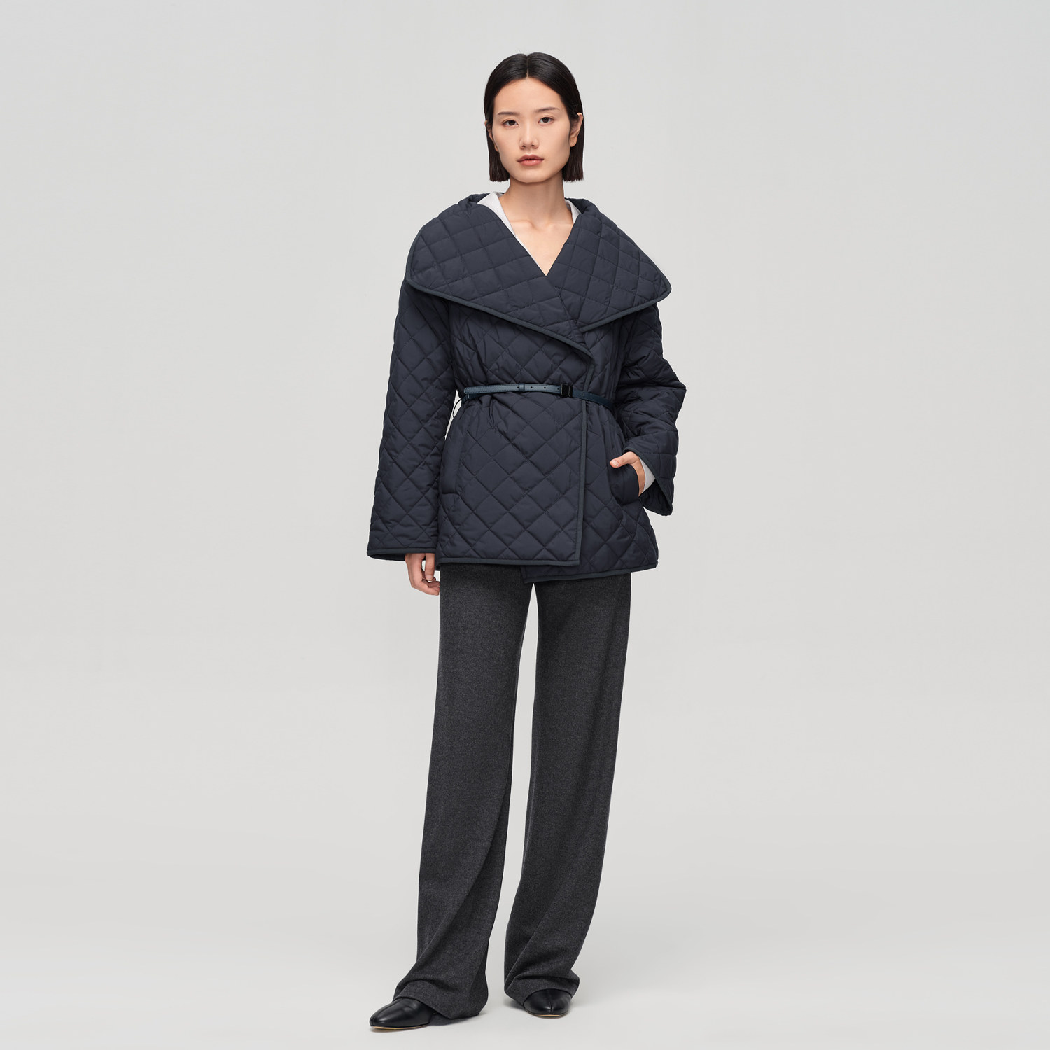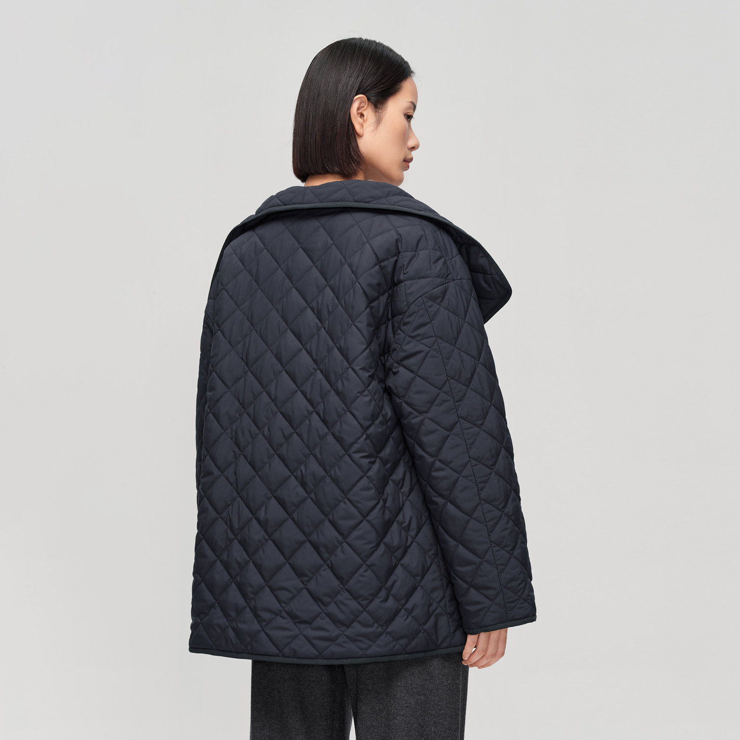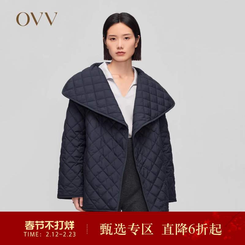 📚 OVV秋冬新款女装经典时髦大翻领小菱格保暖棉服外套