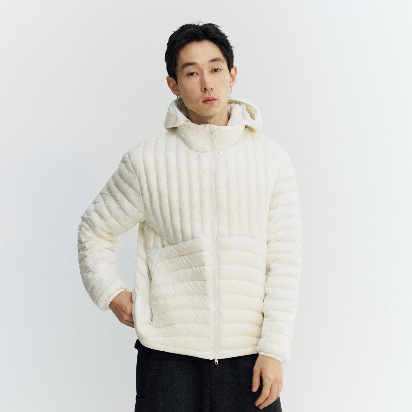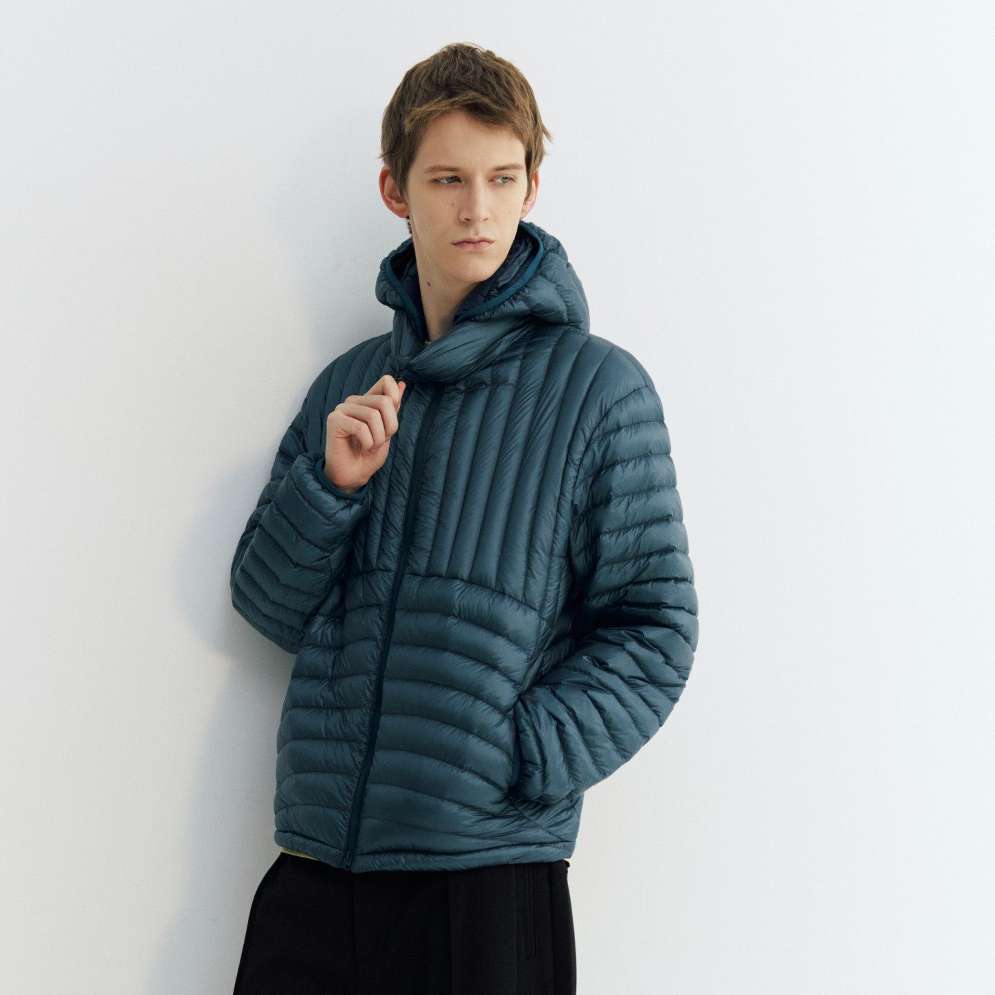 📚 NORYBRAND 轻薄无胆防泼水锁温90%白鸭绒立领连帽可拆排骨羽绒服
