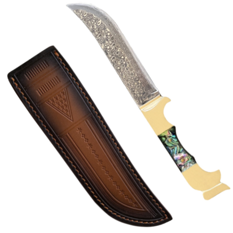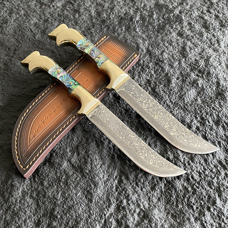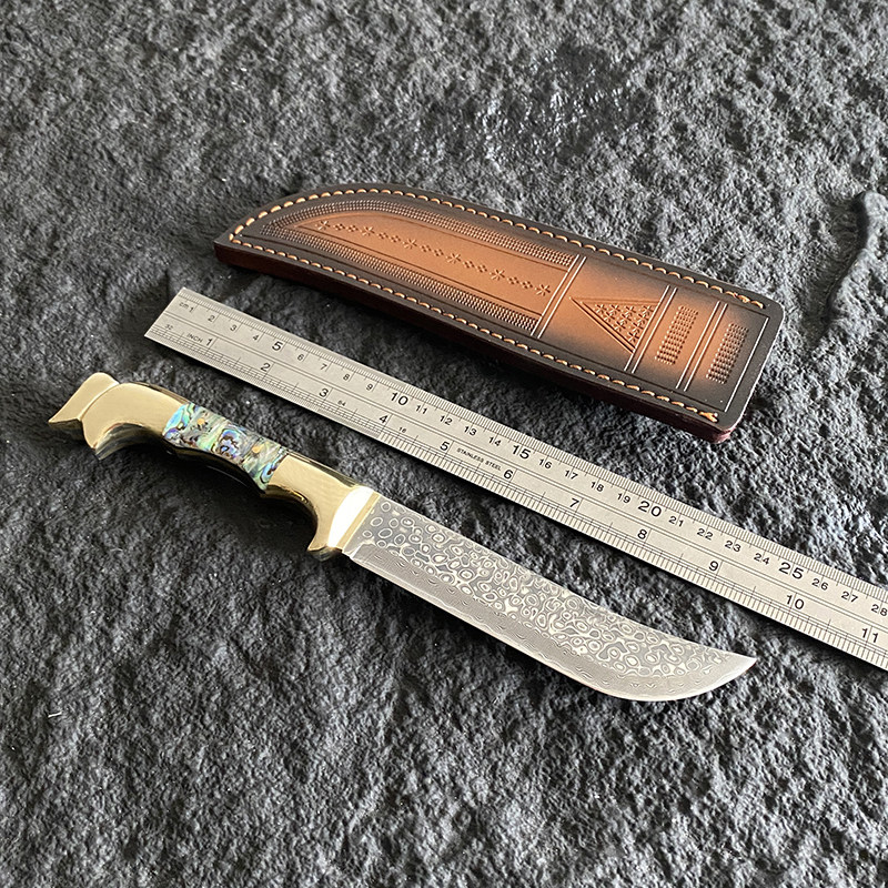 📚 新款英吉沙手把肉小刀大马士革钢高硬度彩贝黄铜手柄果蔬刀水果刀