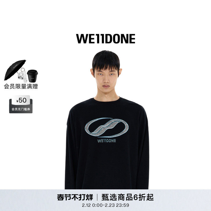 📚 WE11DONE男女同款基础款水洗长袖T恤水晶装饰logo简约休闲时尚