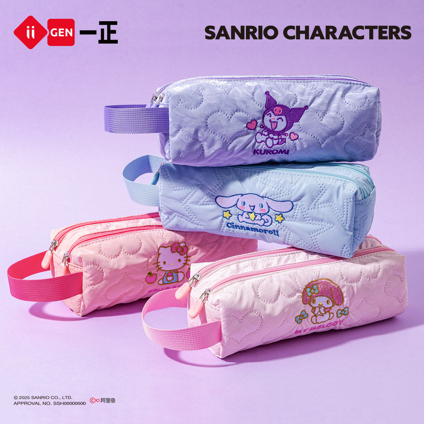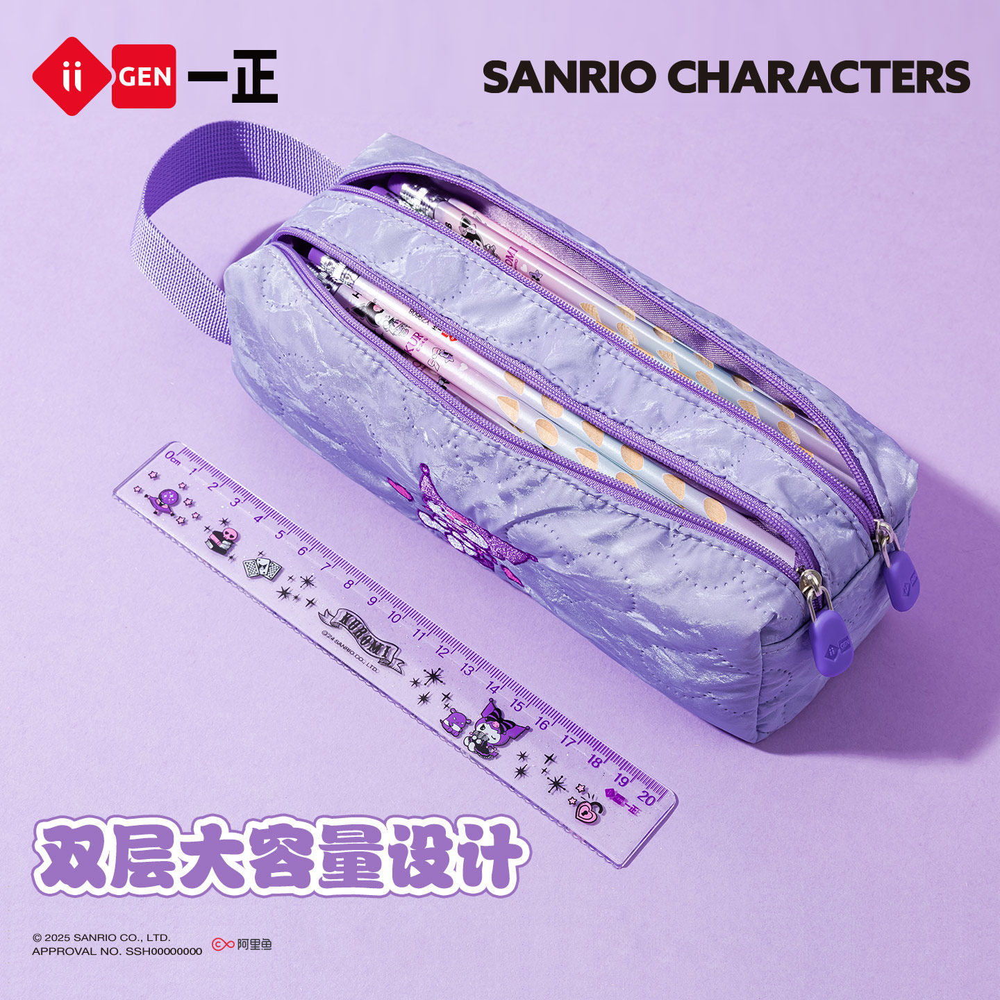 📚 iiGEN一正学生文具三丽鸥云朵双层软软笔袋 中小学生专用儿童大容量文具袋便携收纳新款高颜值学霸女生铅笔盒