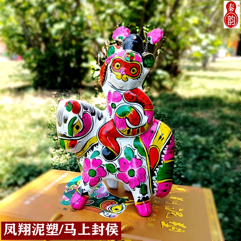 📚 秦雍非遗文创纯手工礼品陕西泥塑摆件凤翔泥塑彩绘马上封侯送领导