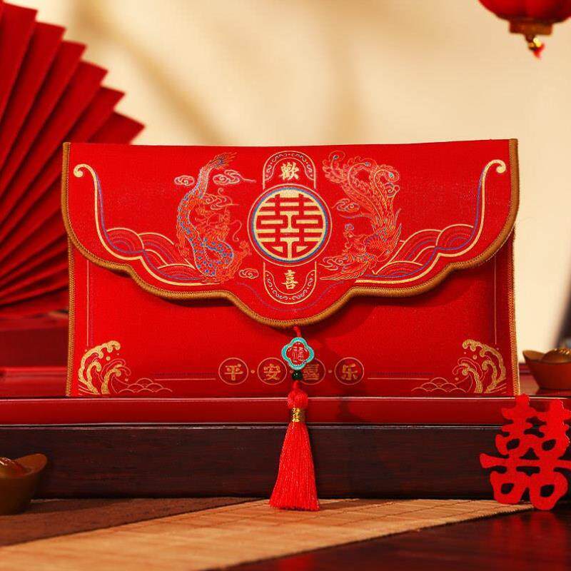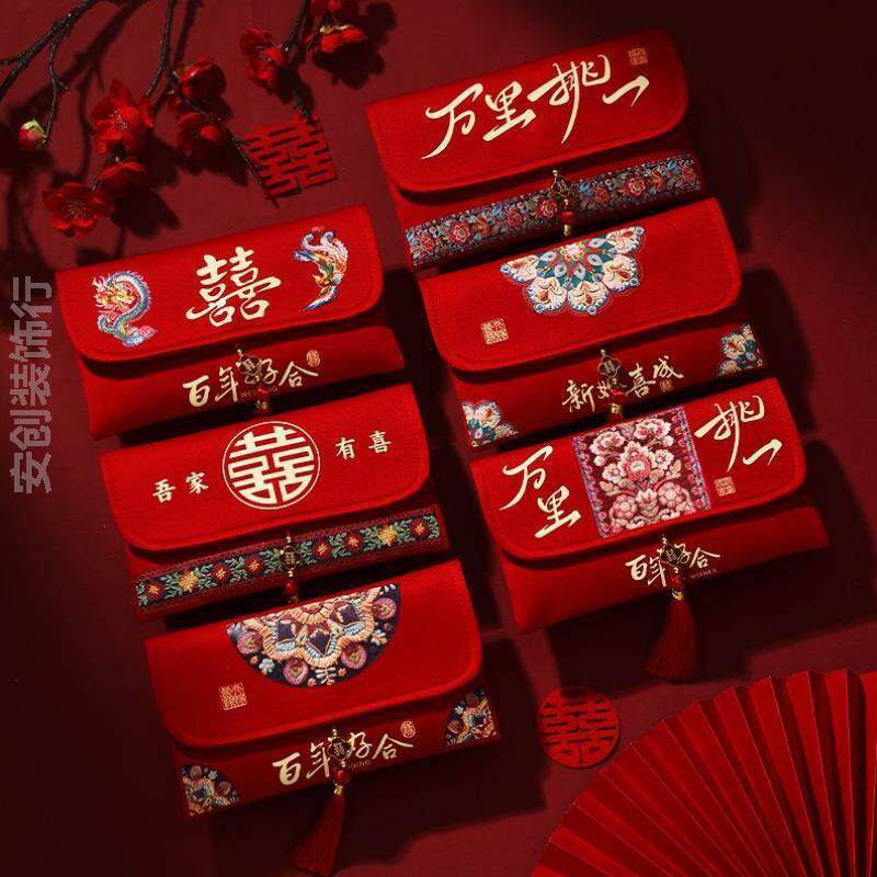 📚 红包大号两万元新款布艺婚庆改口随份子订婚刺绣布袋专用创意份子