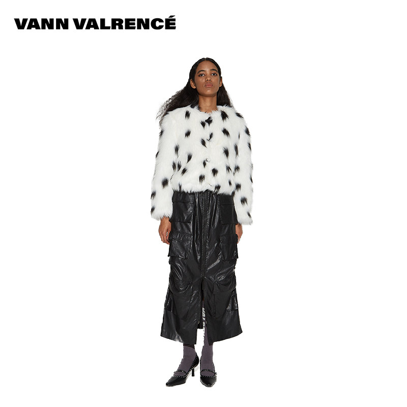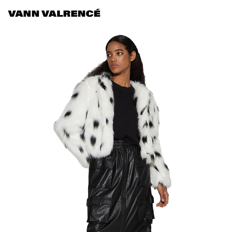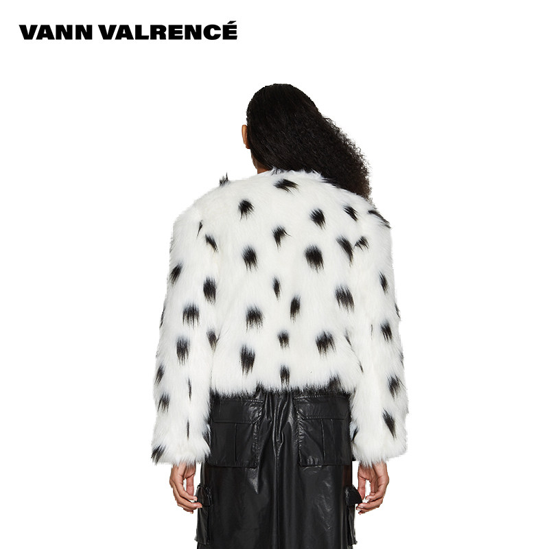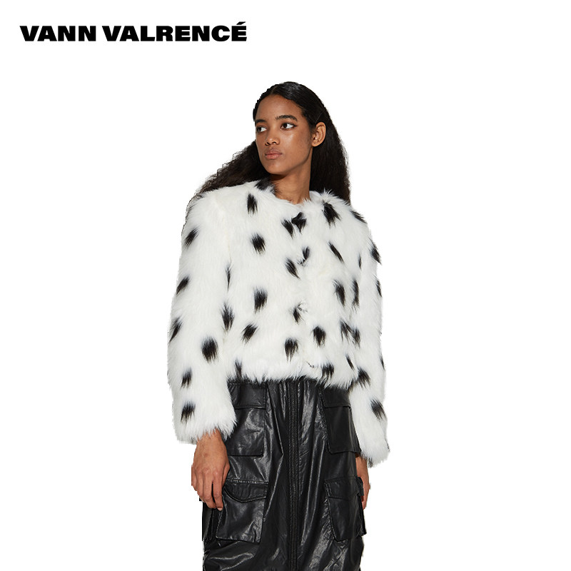 📚 VANN VALRENCE原创设计秋冬季波点高领环保皮草短款保暖外套上衣
