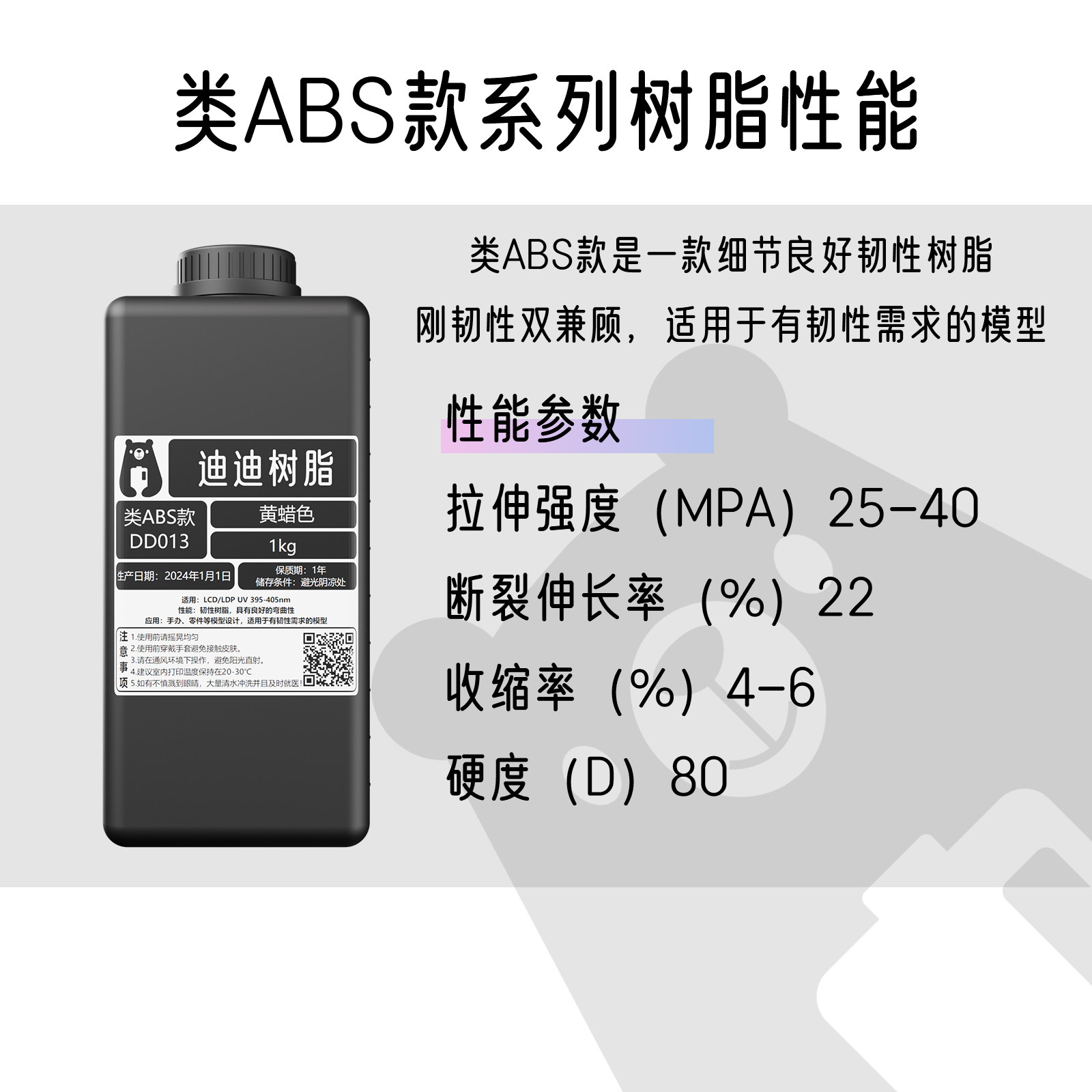 📚 迪迪光敏树脂光固化3D打印机耗材LCD/DLP低气味类ABS韧性树脂