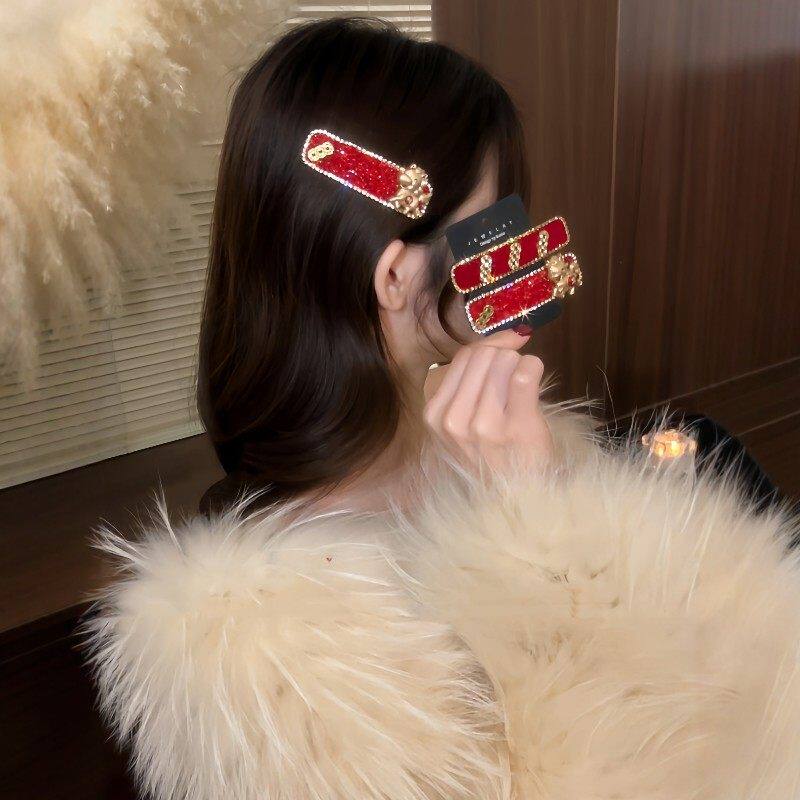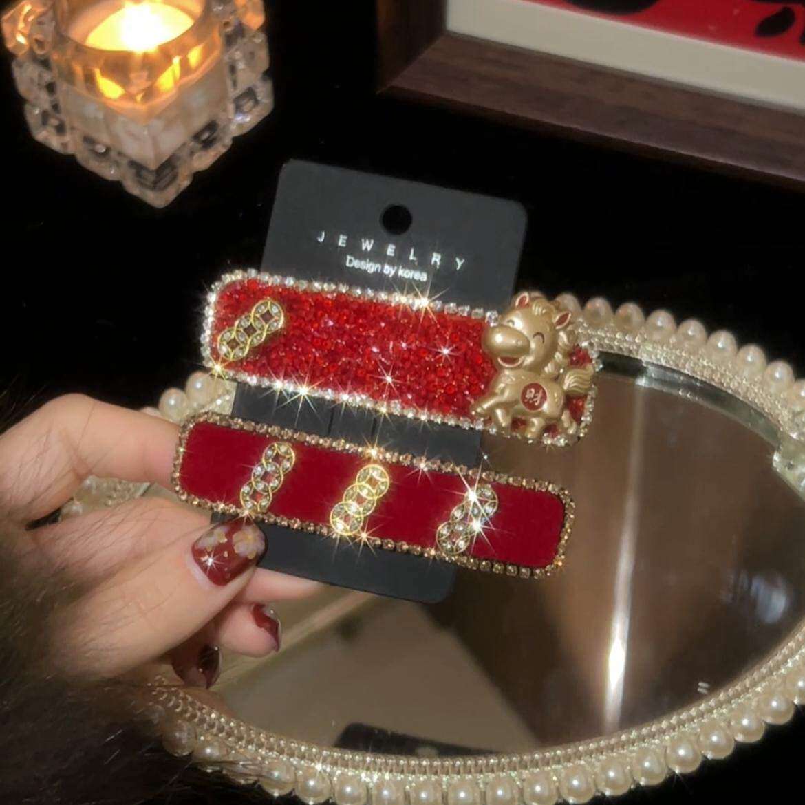 📚 新款轻奢红色水钻小马发夹新年本命年高级感侧边夹个性头饰发饰女