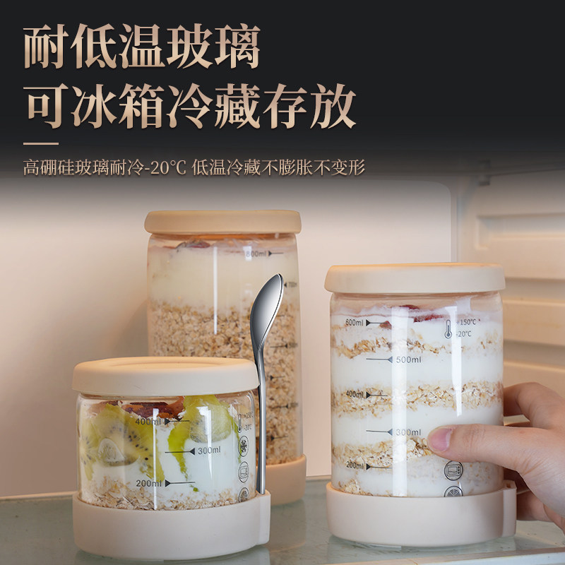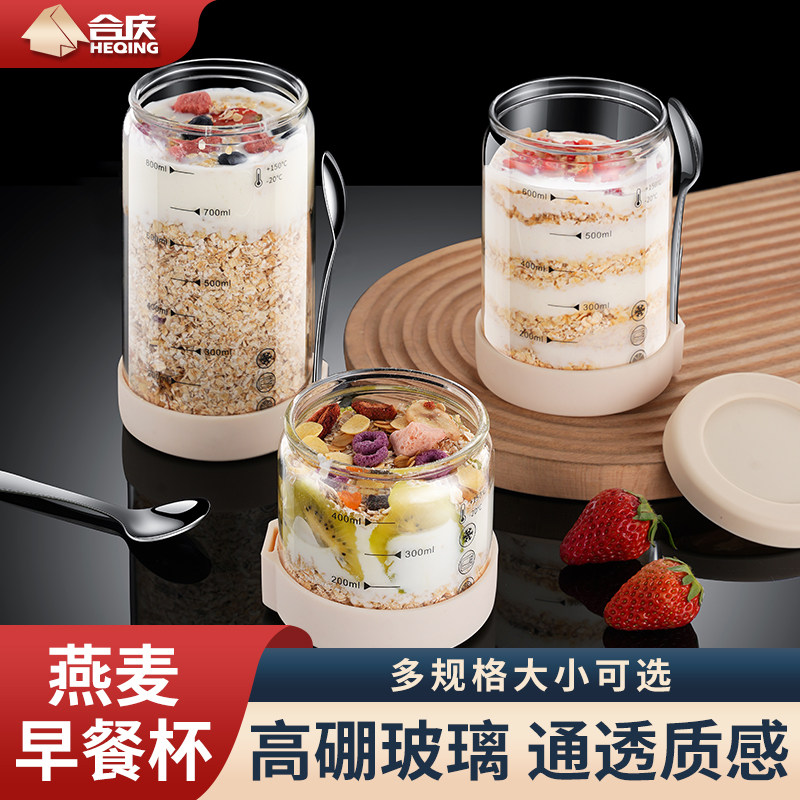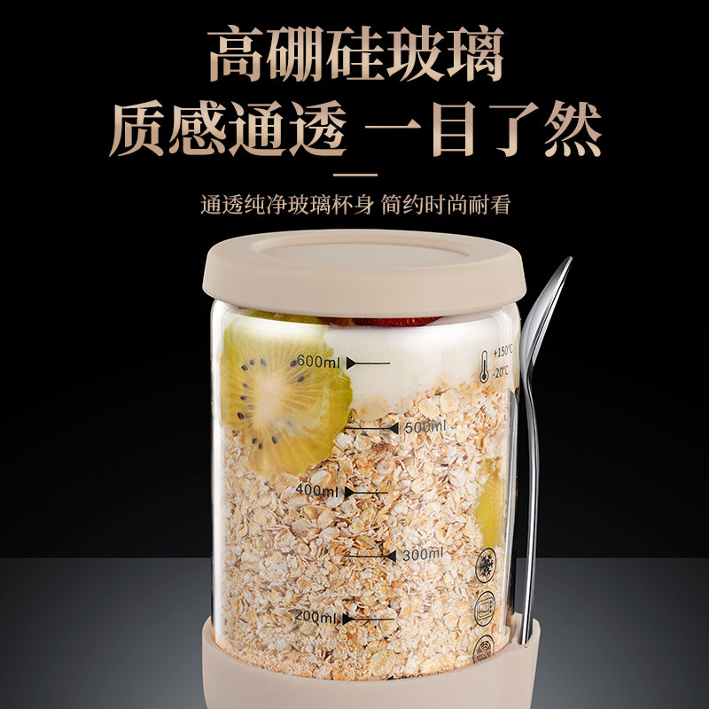 📚 隔夜燕麦杯便携早餐酸奶杯带盖勺密封沙拉儿童牛奶杯奶昔麦片杯子