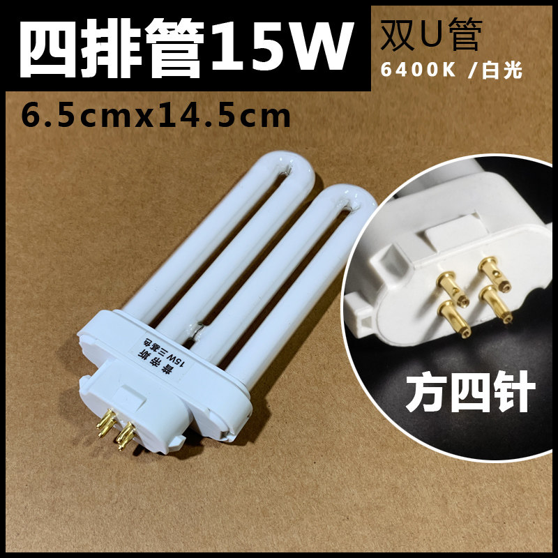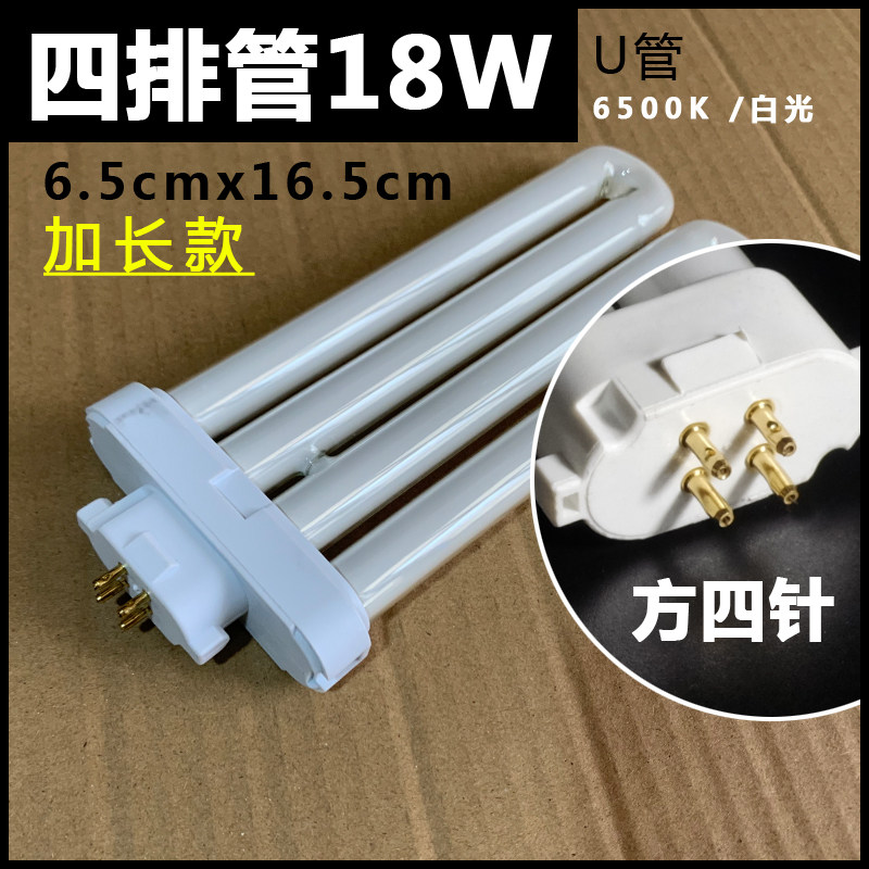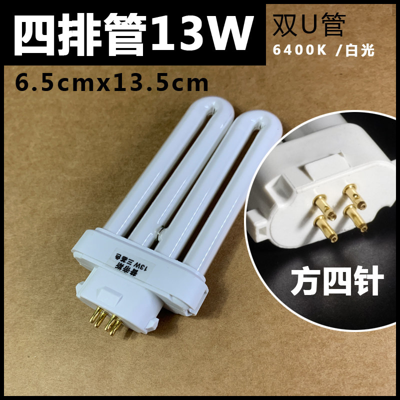📚 u型灯管 三基色荧光灯2u排管13w15w18w27w方四针护眼节能台灯灯管