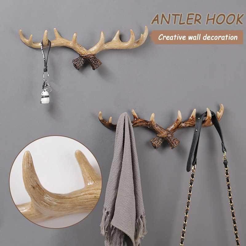 📚 Creatives Resin Antlers Coat Hook Pastoral Wall Mounted