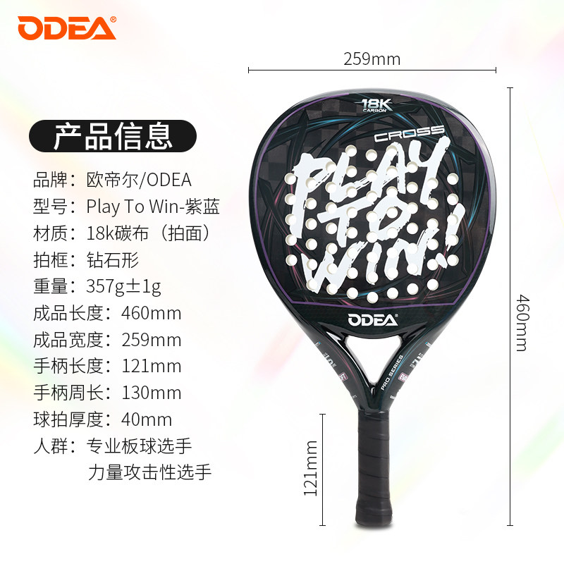 📚 ODEA/欧帝尔padel板式网球拍18K碳纤维专业笼式比赛沙滩球拍