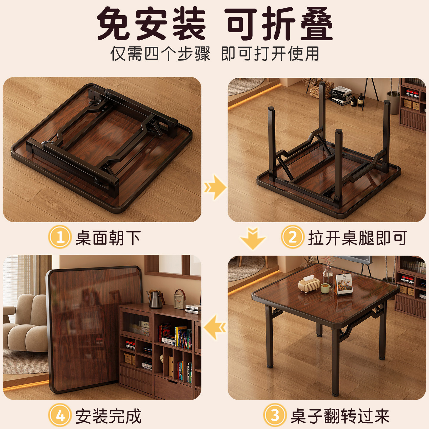 📚 折叠正方形桌子四方桌牌桌小户型家用美式复古风可折叠餐桌不占地