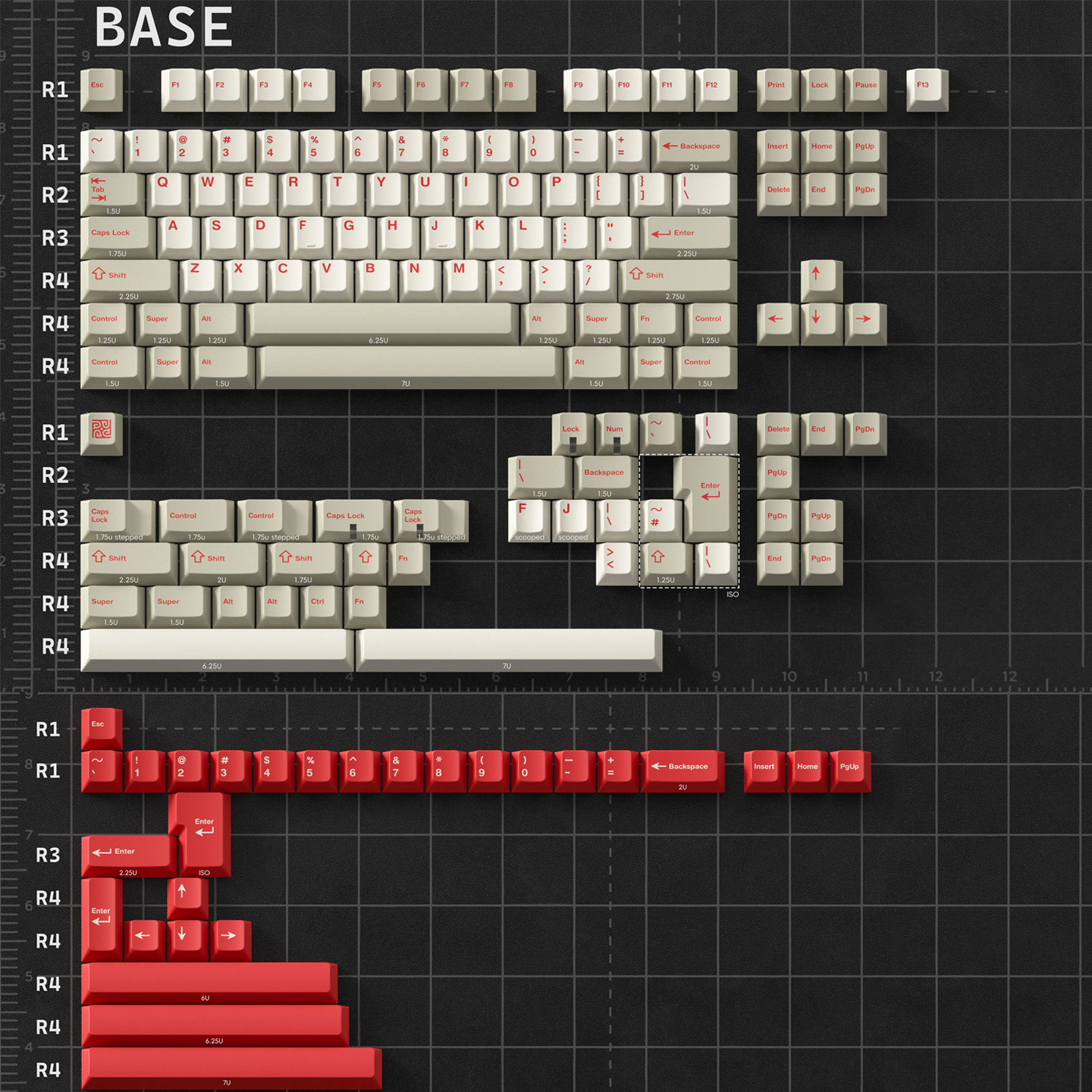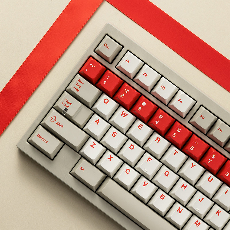 📚 PBTfans Overtime热升华键帽pbt材质 beige复古灰白红原厂高度