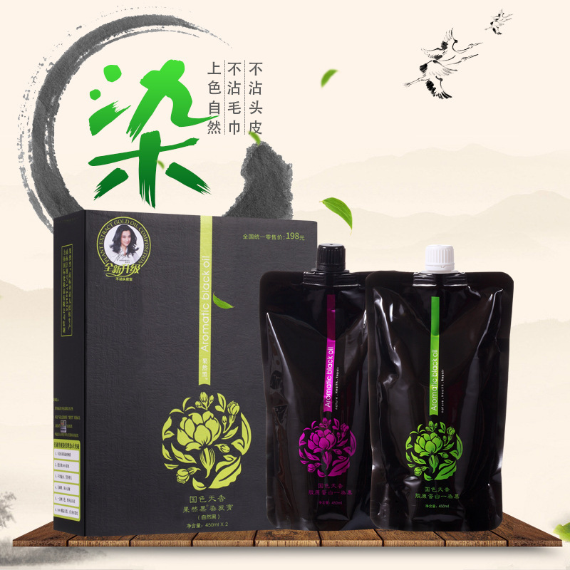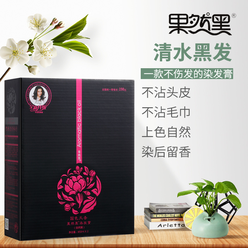 📚 果然黑国色天香 染发膏450ML*2 一梳黑染发剂 植物黑油 发廊同款