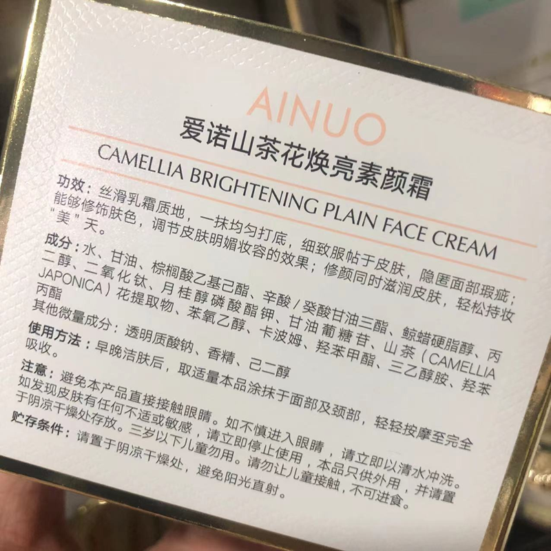 📚 AINUO爱诺山茶花焕亮素颜霜 懒人霜隔离遮瑕提亮肤色修正偏黄瑕疵