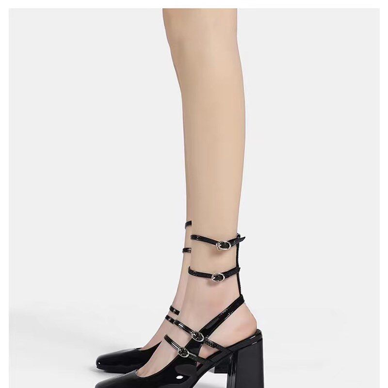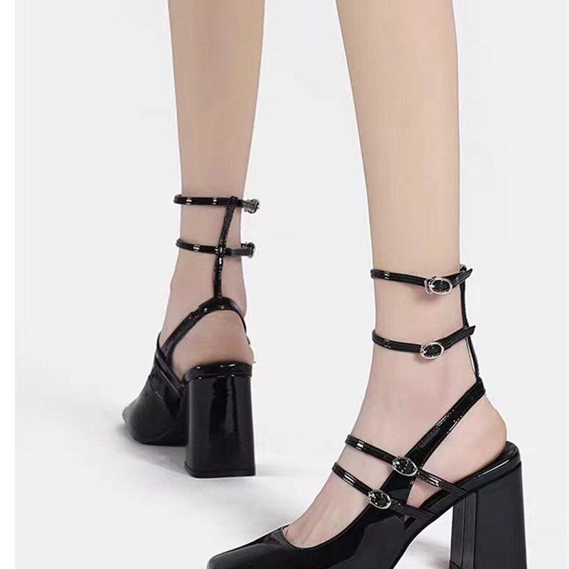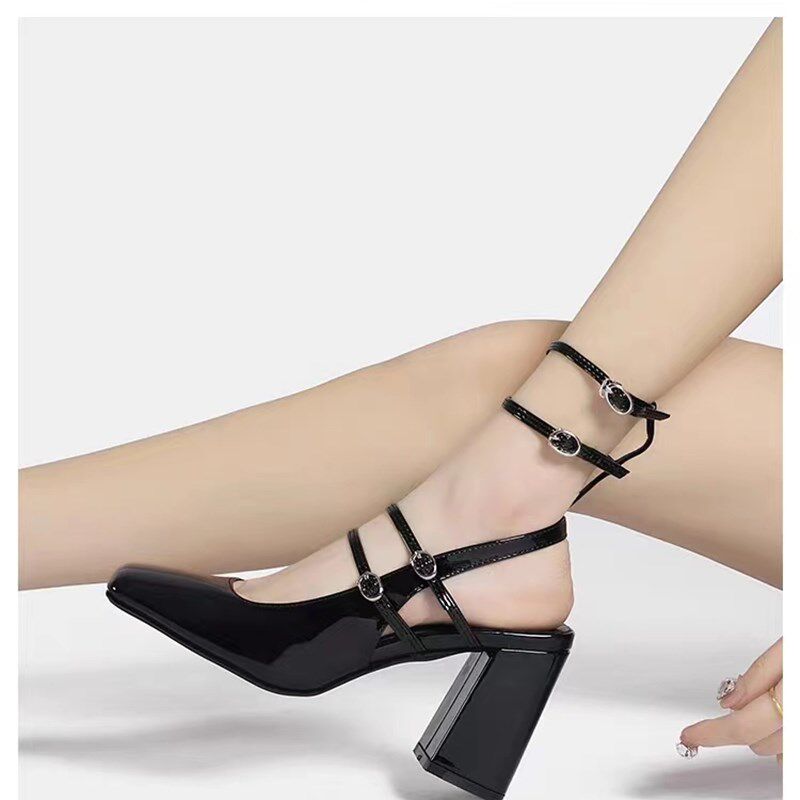 📚 法式复古马丽珍单鞋女2023年新款E仙女风小众黑色漆皮粗跟高跟鞋