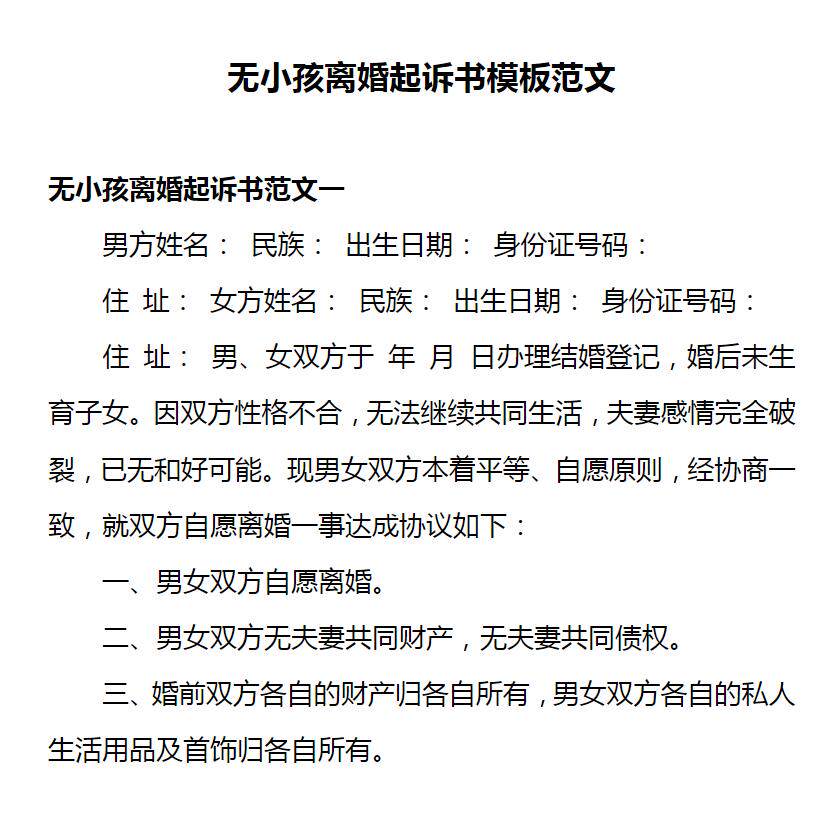 📚 离婚起诉书模板离婚诉讼状婚姻起诉协议范本纠纷维权电子版