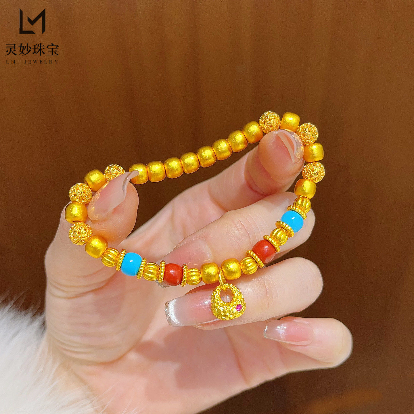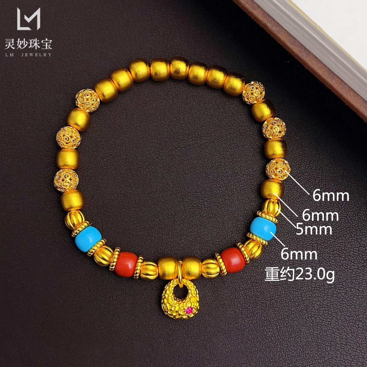 📚 古法越南沙金锤纹小金坨老型珠绿松手链实心胖福苹果珠手串国风女