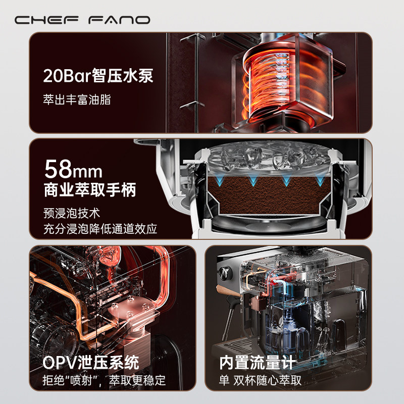 📚 法国施梵罗M1研磨一体咖啡机美式意式半自动家用小型OPV稳压萃取