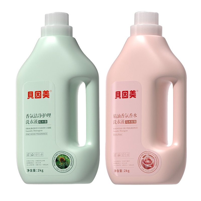 📚 贝因美2kg瓶装松木香氛+乌木玫瑰家洗衣液母婴可用温和去污长留香