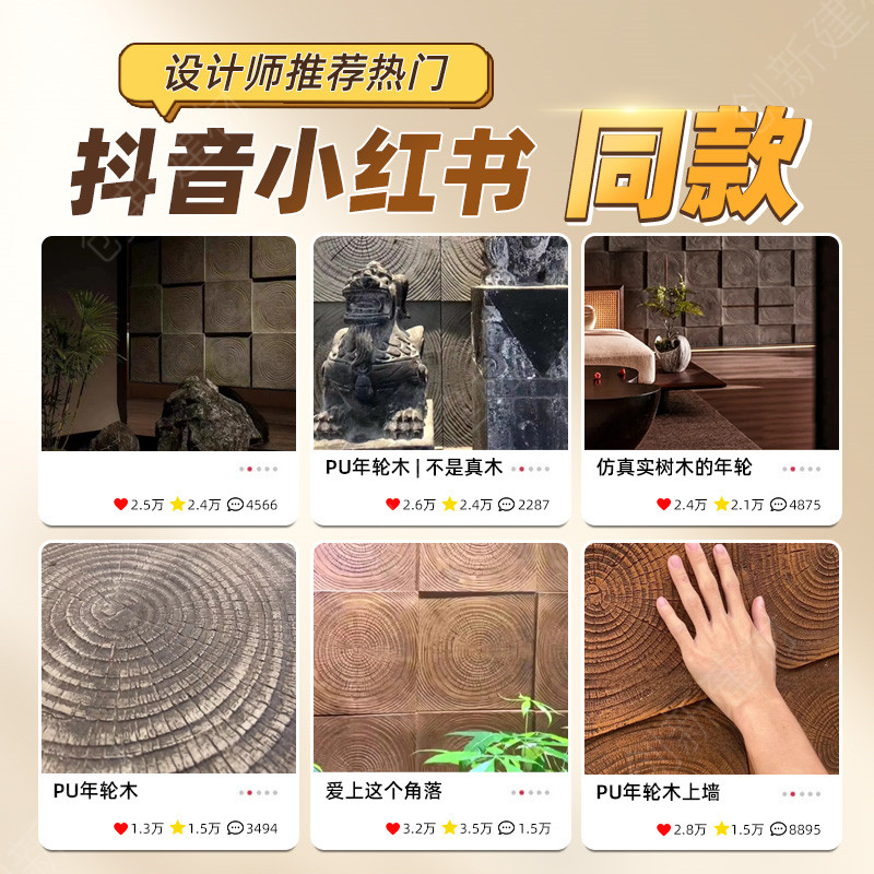 📚 pu年轮木pu仿木板仿年轮木纹砖pu仿石材文化石背景墙外墙装饰板