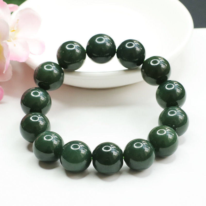 📚 阿里拍卖和田玉青玉手串手链塔青黑珠宝玉石玉器男款