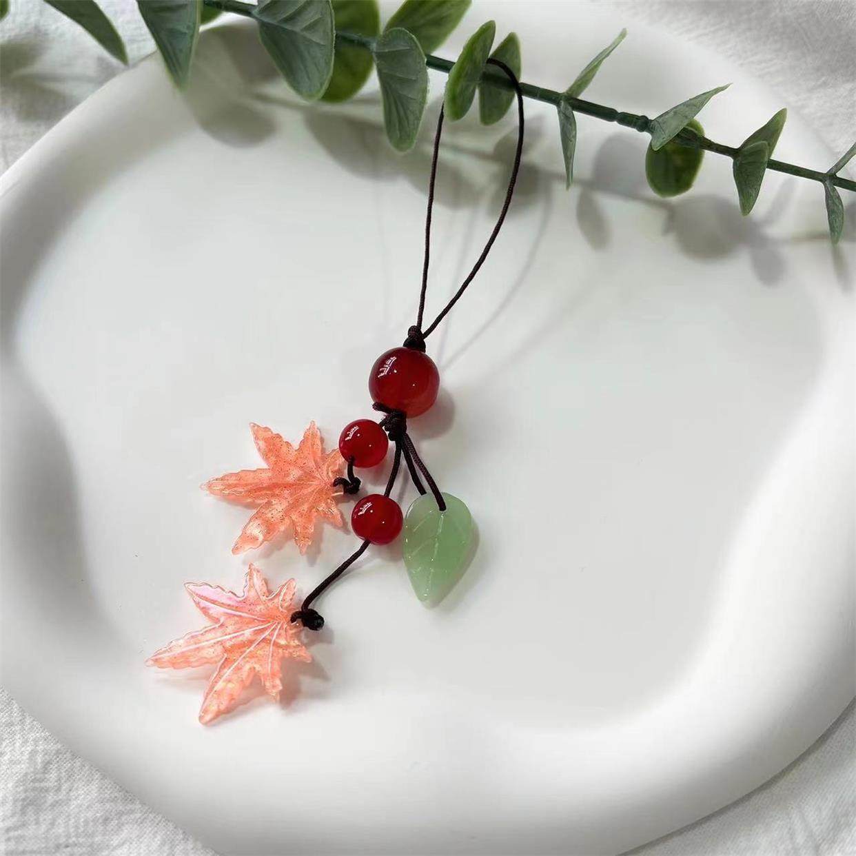 📚 枫叶红手机连新款挂绳钥匙扣 一丈红树叶绿色挂件配饰送闺蜜枫叶
