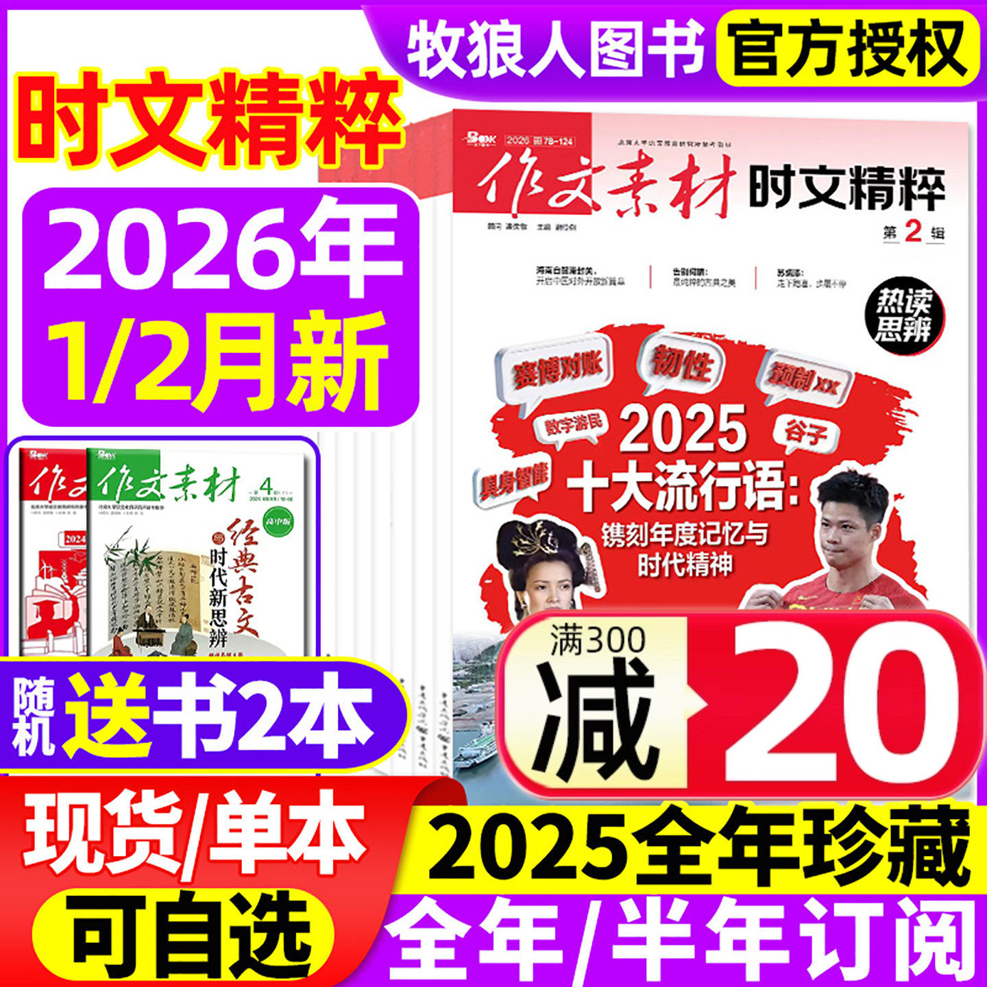 大家好!今天我要给大家分享一款超级好物——作文素材时文精粹杂志,特别是2026年的全年/半年订阅版本。这次,我们聚焦于高中版的高考语文高分作文素材课堂内外,让我们一起来品读这些精华本吧!