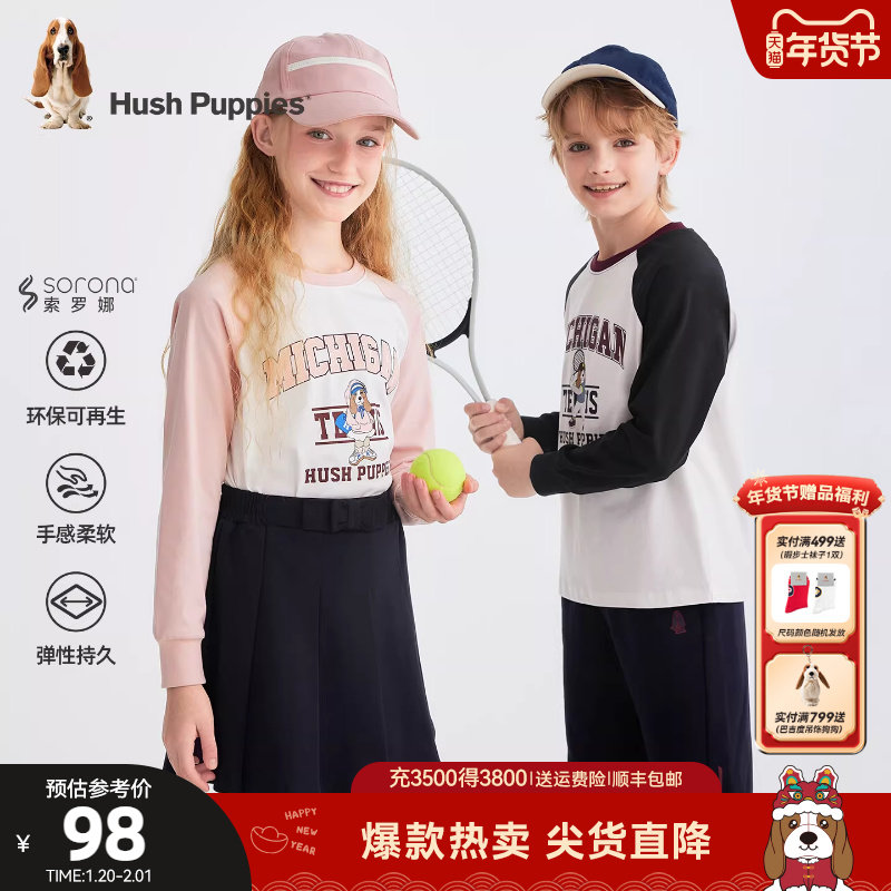 📚 暇步士童装儿童t恤衫春秋新品女童学院风T恤男大童休闲宝宝圆领衫