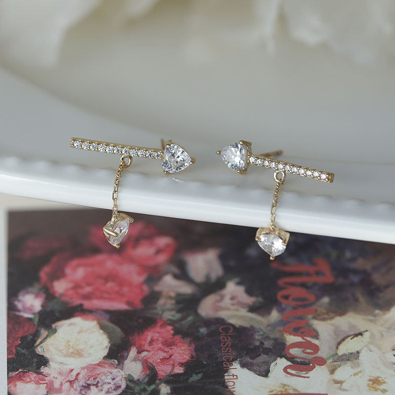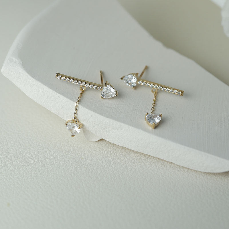 📚 白小C韩国10K14K金黄金首饰 爱心一字排钻吊坠流苏耳链耳钉