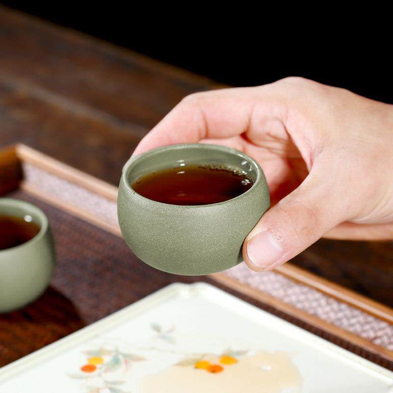 📚 【畅陶】宜兴原矿紫砂手工品茗杯段泥豆青砂功夫茶杯单个价75cc