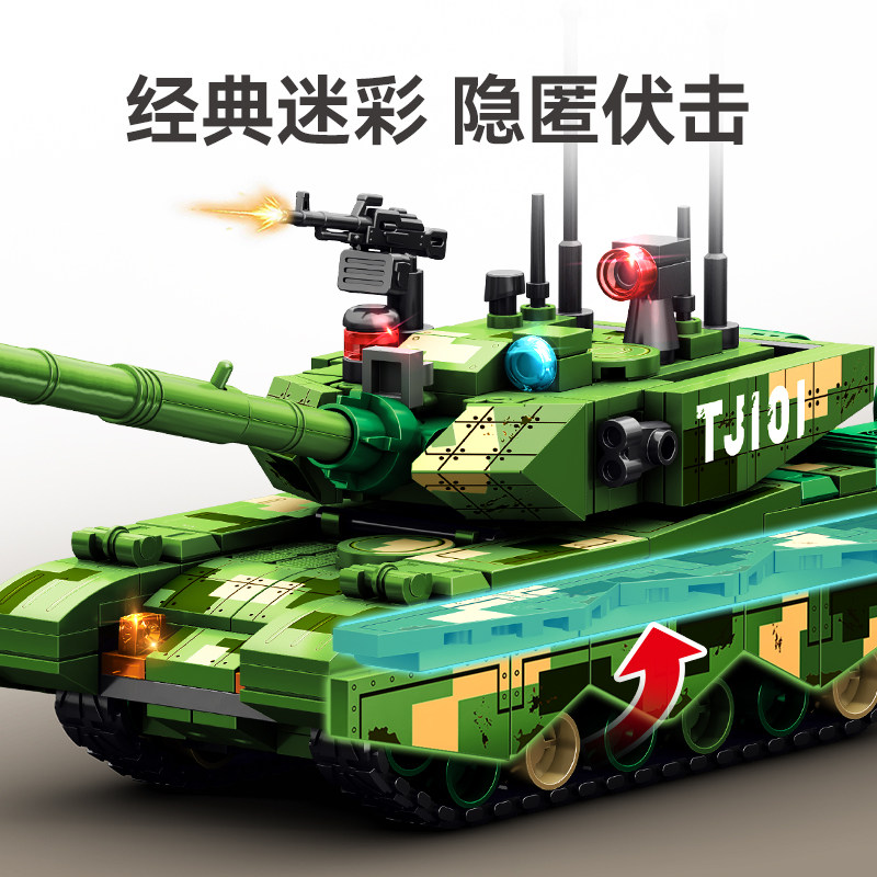 📚 森宝军事99A主战坦克履带战车组装模型男孩拼装积木拼插玩具礼物