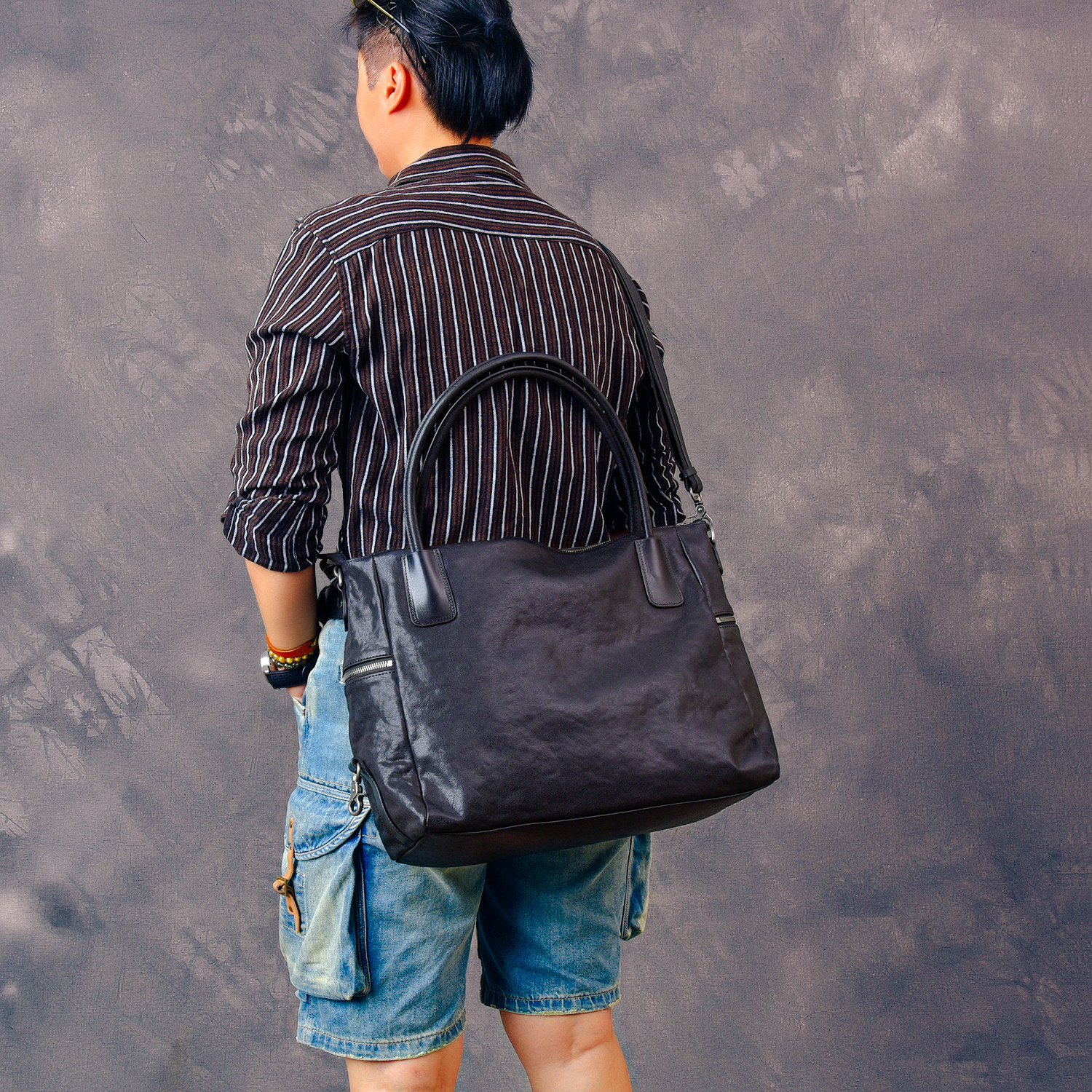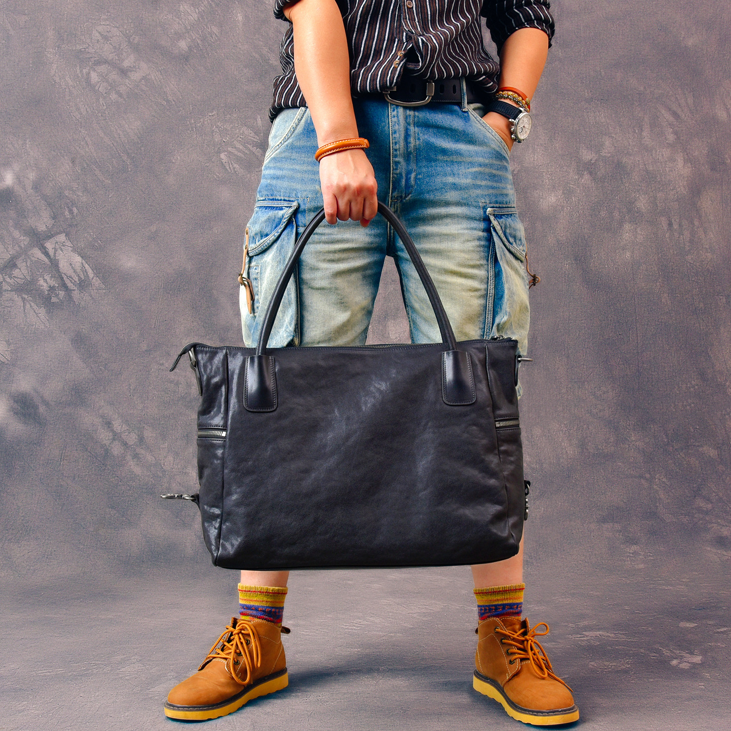 📚 二十四街复古植鞣牛皮大号商务手提包潮真皮多功能斜挎休闲公文包