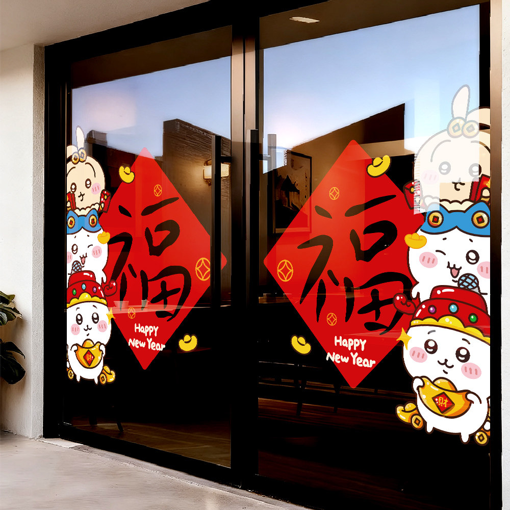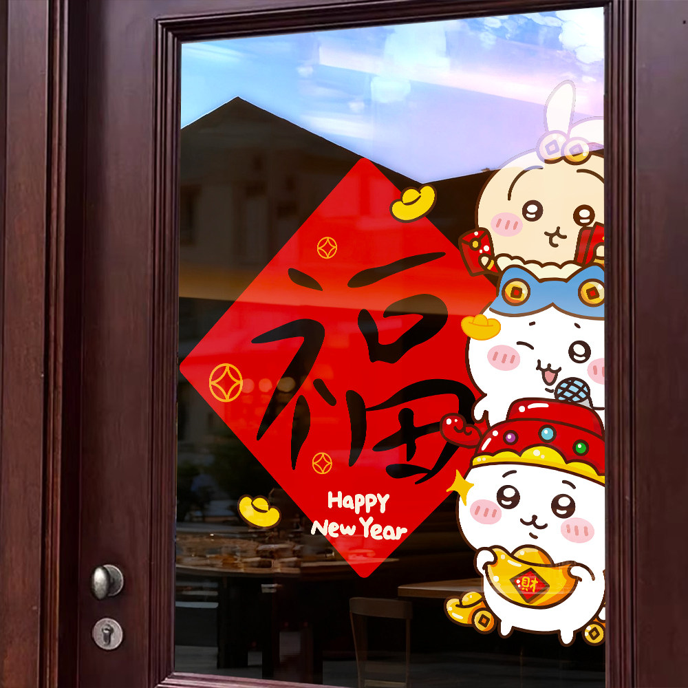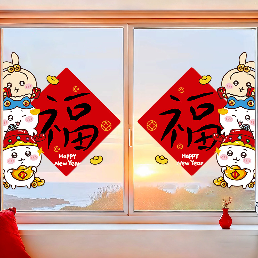 📚 2026新年春节福字贴阳台玻璃门贴chiikawa吉伊卡哇过年贴纸窗贴画