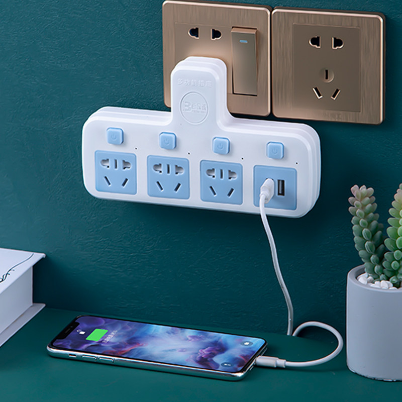 📚 多功能转换器多孔插座带USB独立开关排插板墙壁拓展电源插头家用