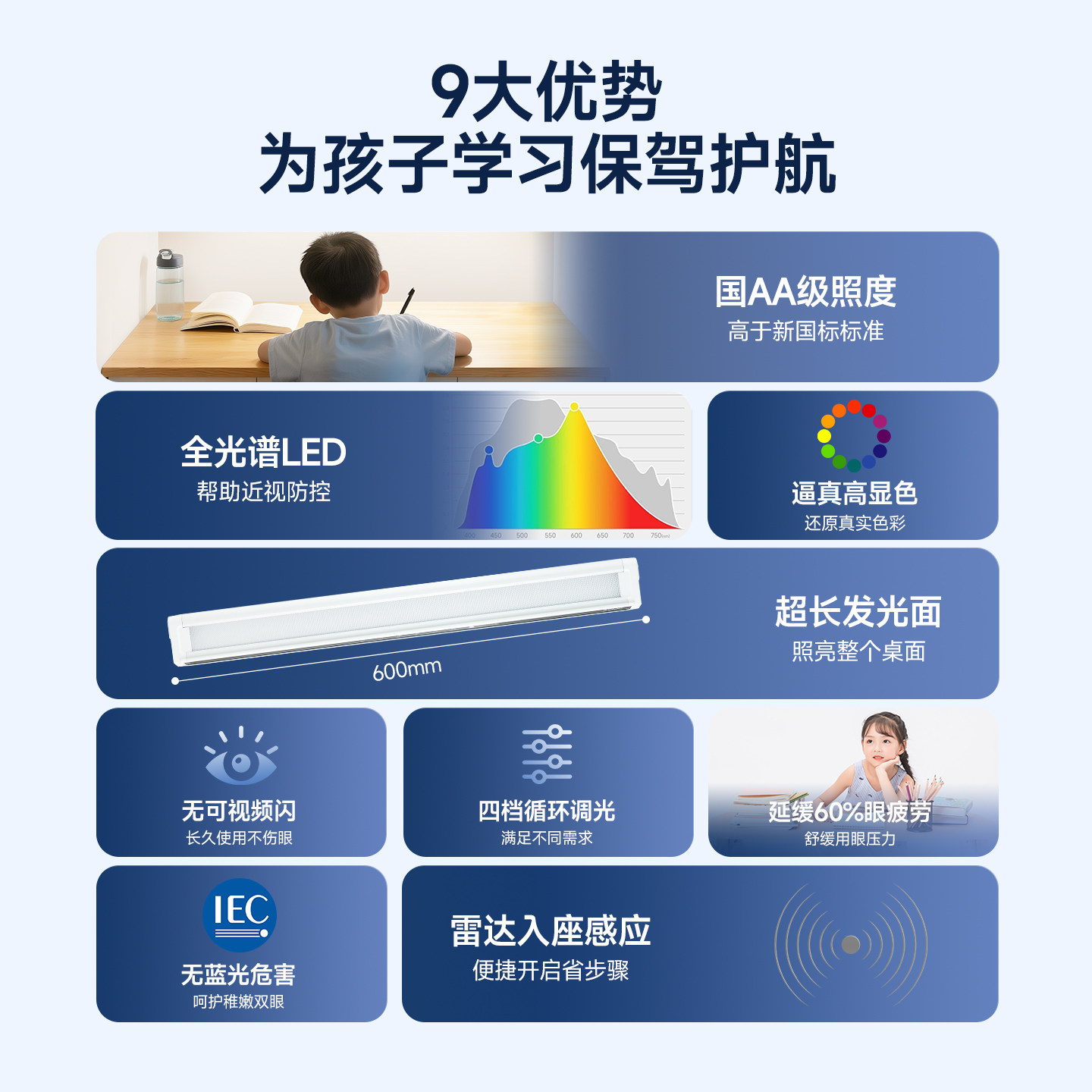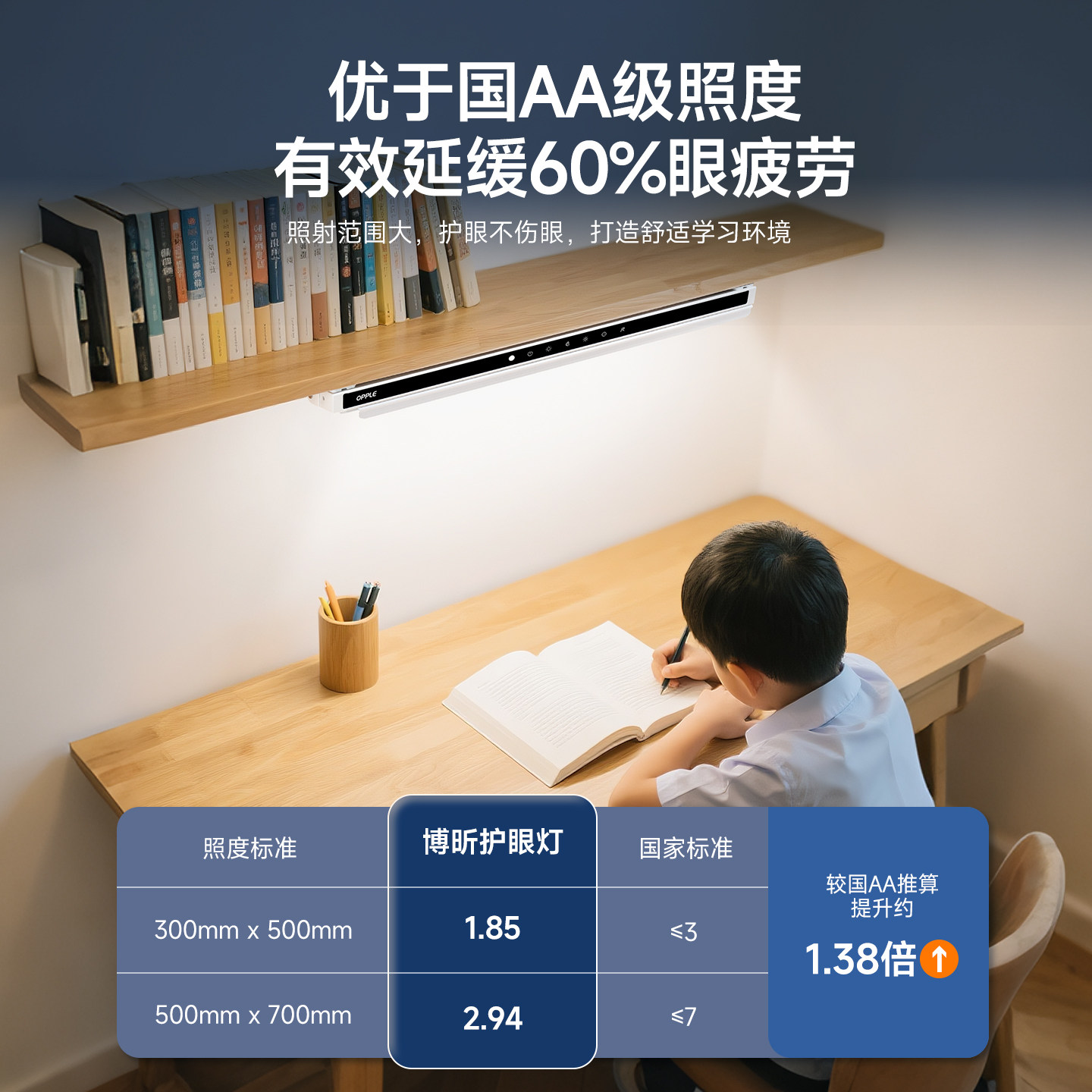 📚 OPPLE欧普全光谱护眼儿童学生学习灯防蓝光无频闪国AA级照度阅读