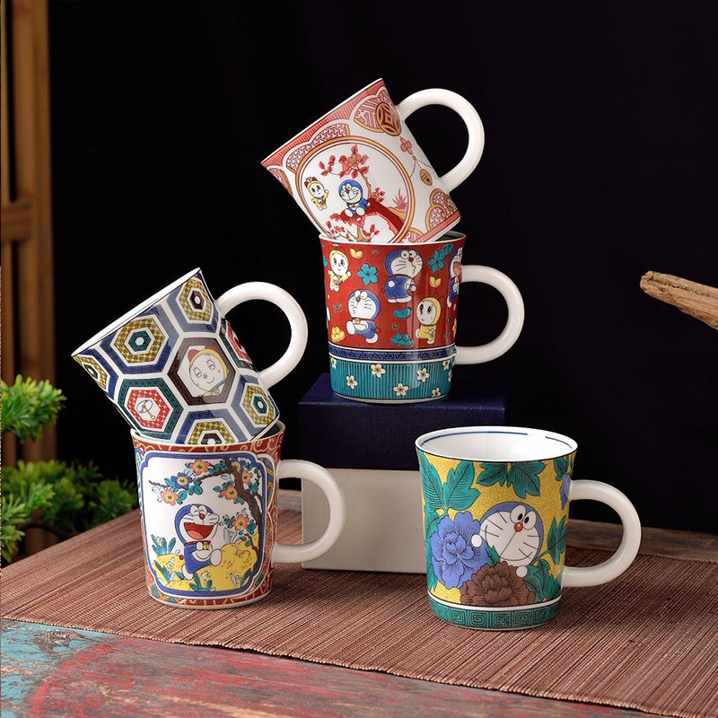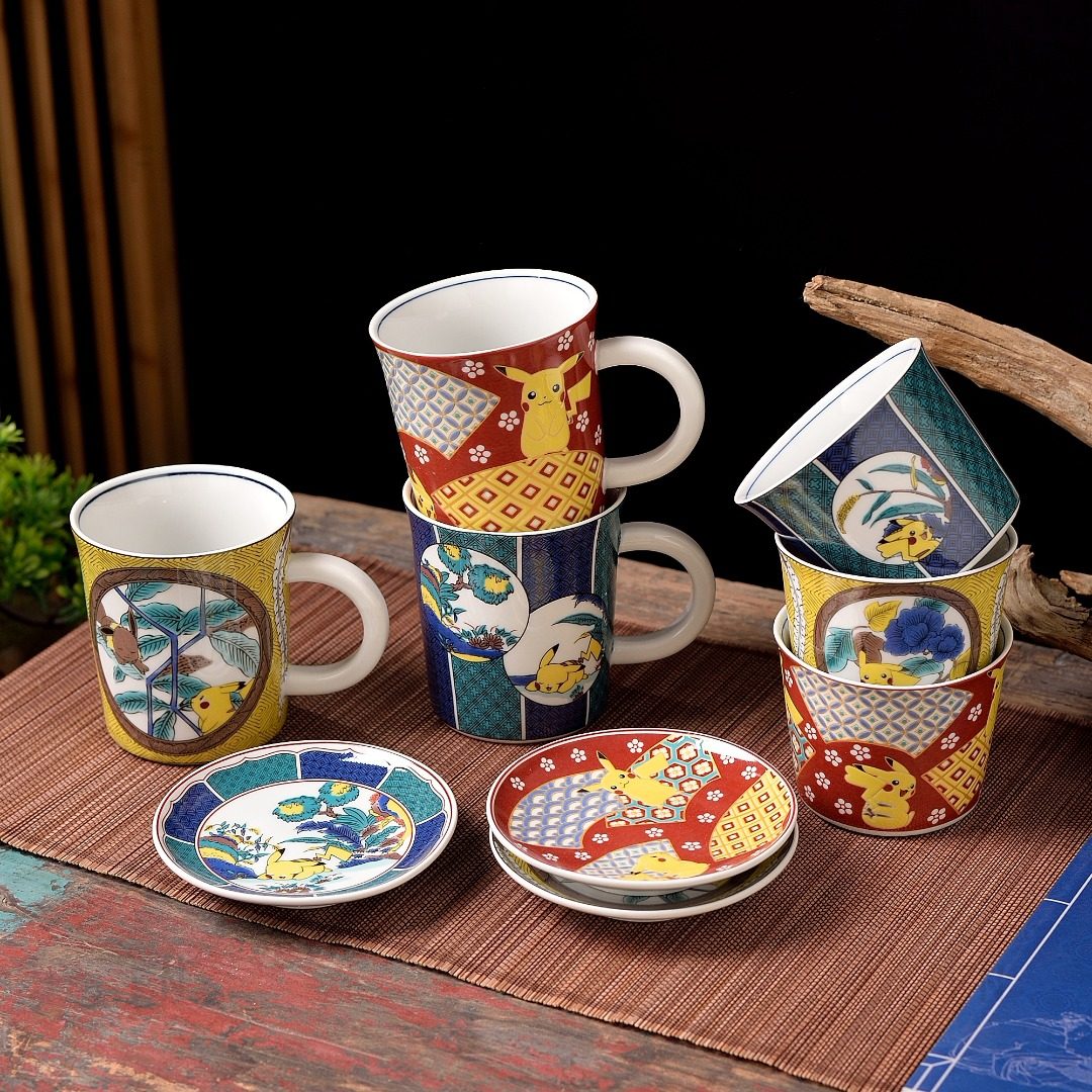 📚 九谷烧哆啦A梦皮卡丘宝可梦联名卡通陶瓷马克杯猪口杯小碟子礼盒
