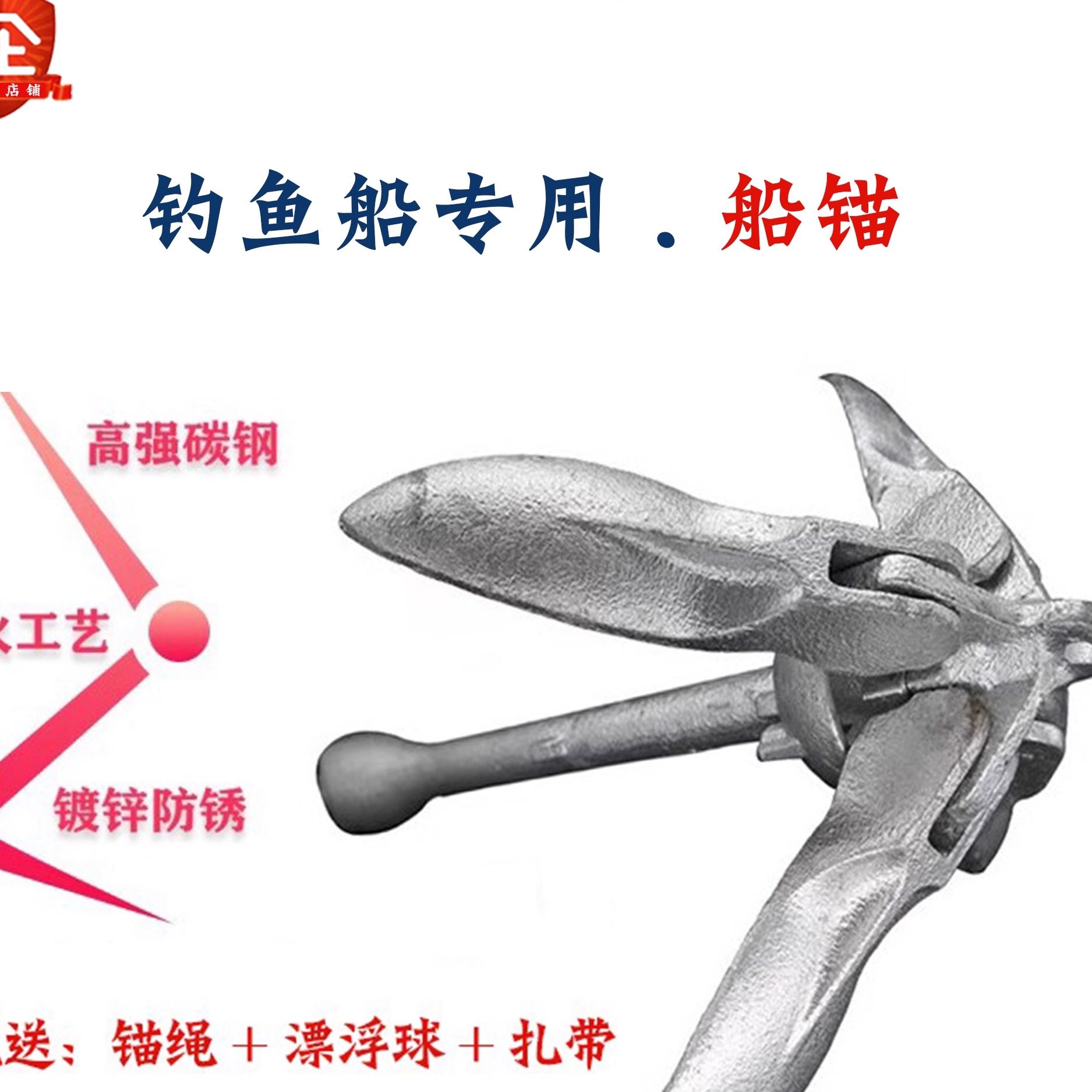 📚 钓鱼用品船锚充气船橡皮艇专用碳钢镀锌防锈可折叠船锚送锚绳