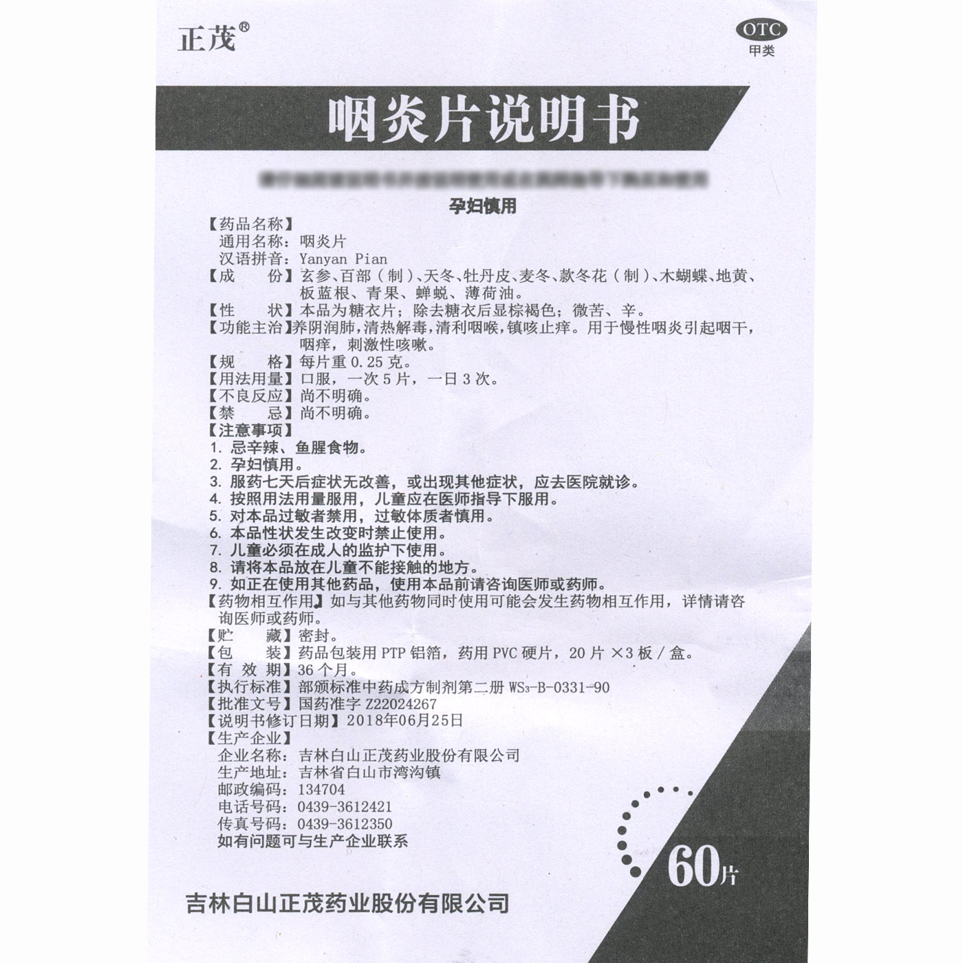 📚 正茂咽炎片60片养阴润肺清热解毒清利咽喉镇咳止痒咽炎咽干咽痒药