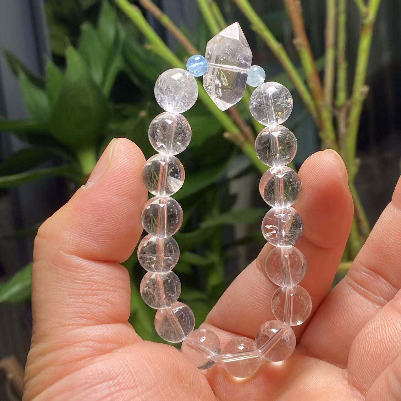 📚 天然列姆利亚白水晶部分带彩虹阿塞配海蓝宝闪灵直销