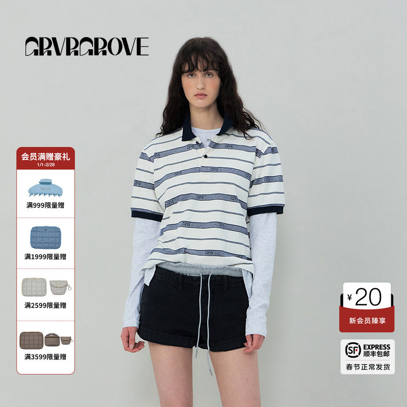 📚 【博主同款】GROVE2025SS春夏款女士条纹短袖polo衫t恤GR5TS03C
