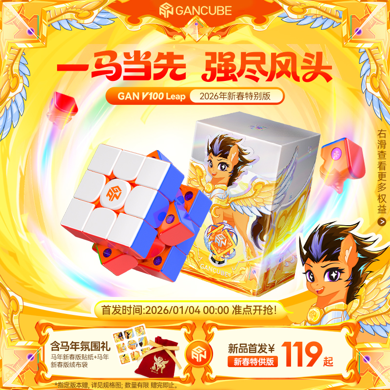 📚 GAN V100马年新春限定磁力魔方三阶比赛儿童玩具新年礼物icarry4