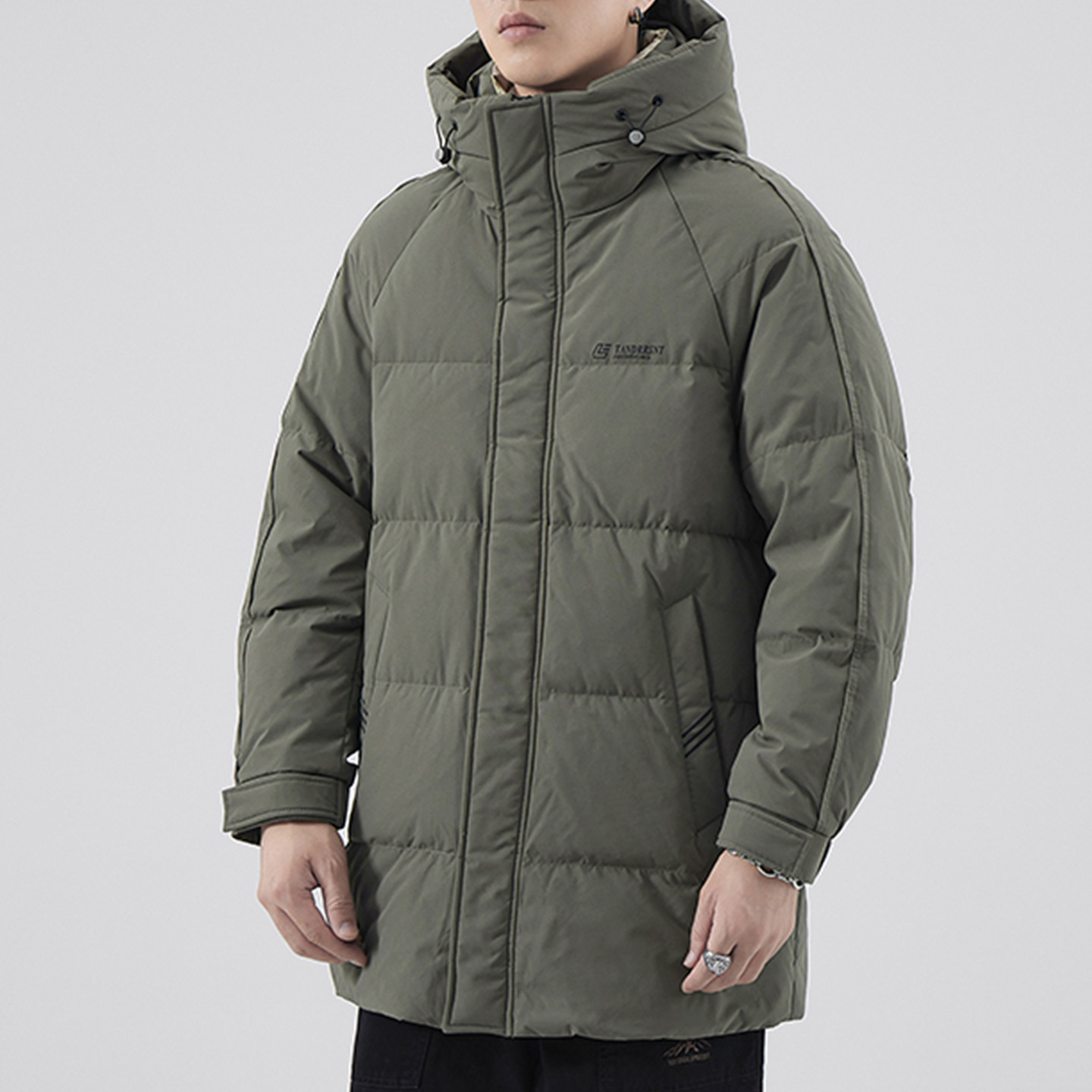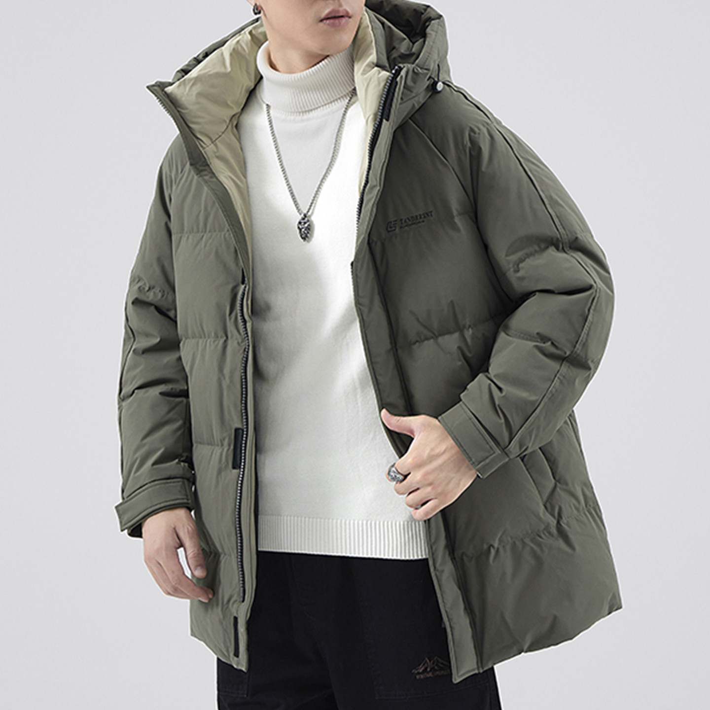 📚 男士军绿色中长款羽绒服男款新款冬季加厚外套休闲保暖男装棉袄潮