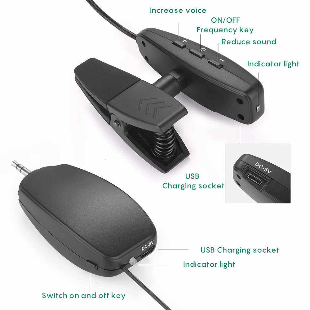 📚 UHF Saxophone Mic Wireless Microphone System Clip on