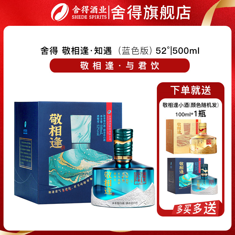 📚 舍得敬相逢 (蓝色版)52度浓香型白酒纯粮食酒商务自饮500ml单瓶装