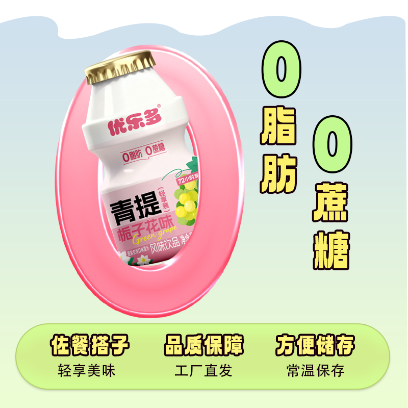 📚 优乐多乳酸菌饮料青提栀子花味早餐益生菌酸奶发酵饮品饮料