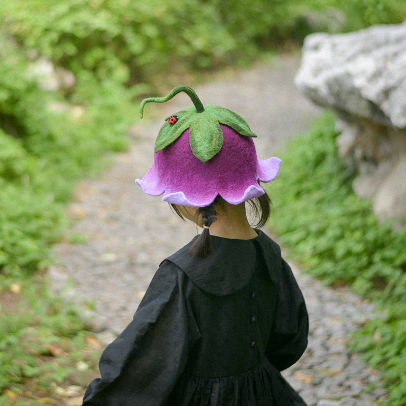📚 「蘑菇梦手作森风」铃铛花羊毛毡帽 原创森系日系春游度假风配饰
