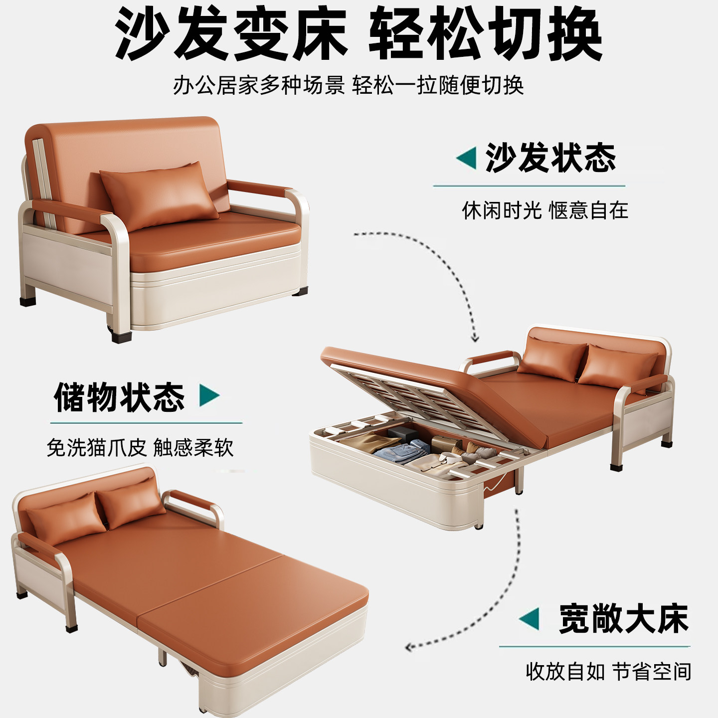 📚 沙发床折叠两用2026新款家用多功能可收纳伸缩单双人小户型推拉床