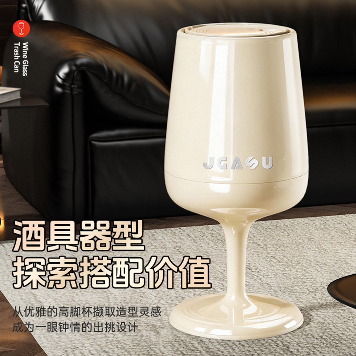 💥朋菲创意红酒杯垃圾桶客厅新宠,轻奢带盖垃圾筒厨房神器,券后价仅99.9!