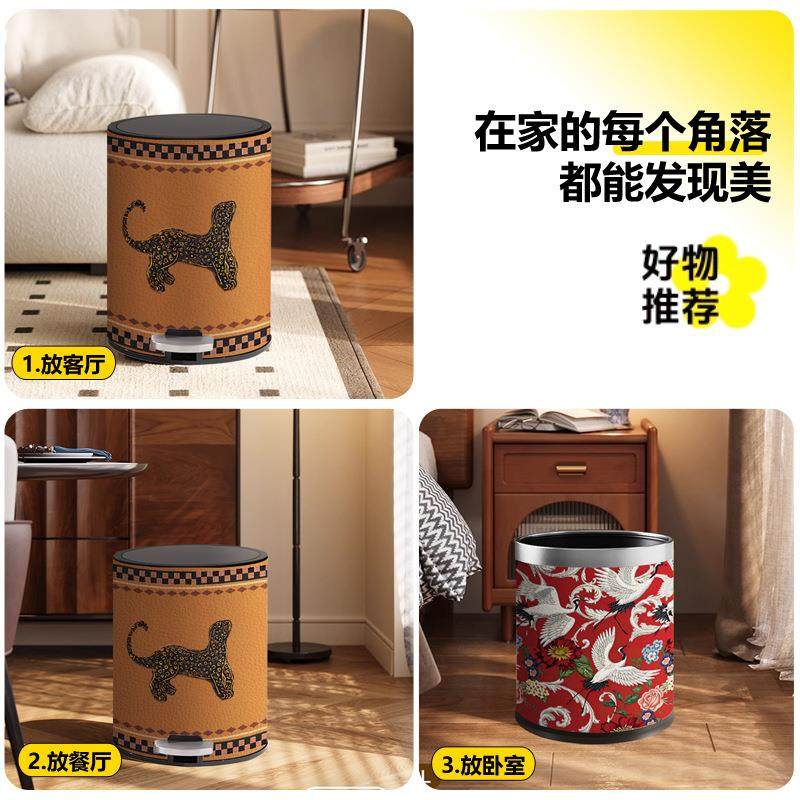 📚 禾牧程不锈钢家用垃圾桶中古风金钱豹垃圾筒厨房卧室卫生桶高颜值
