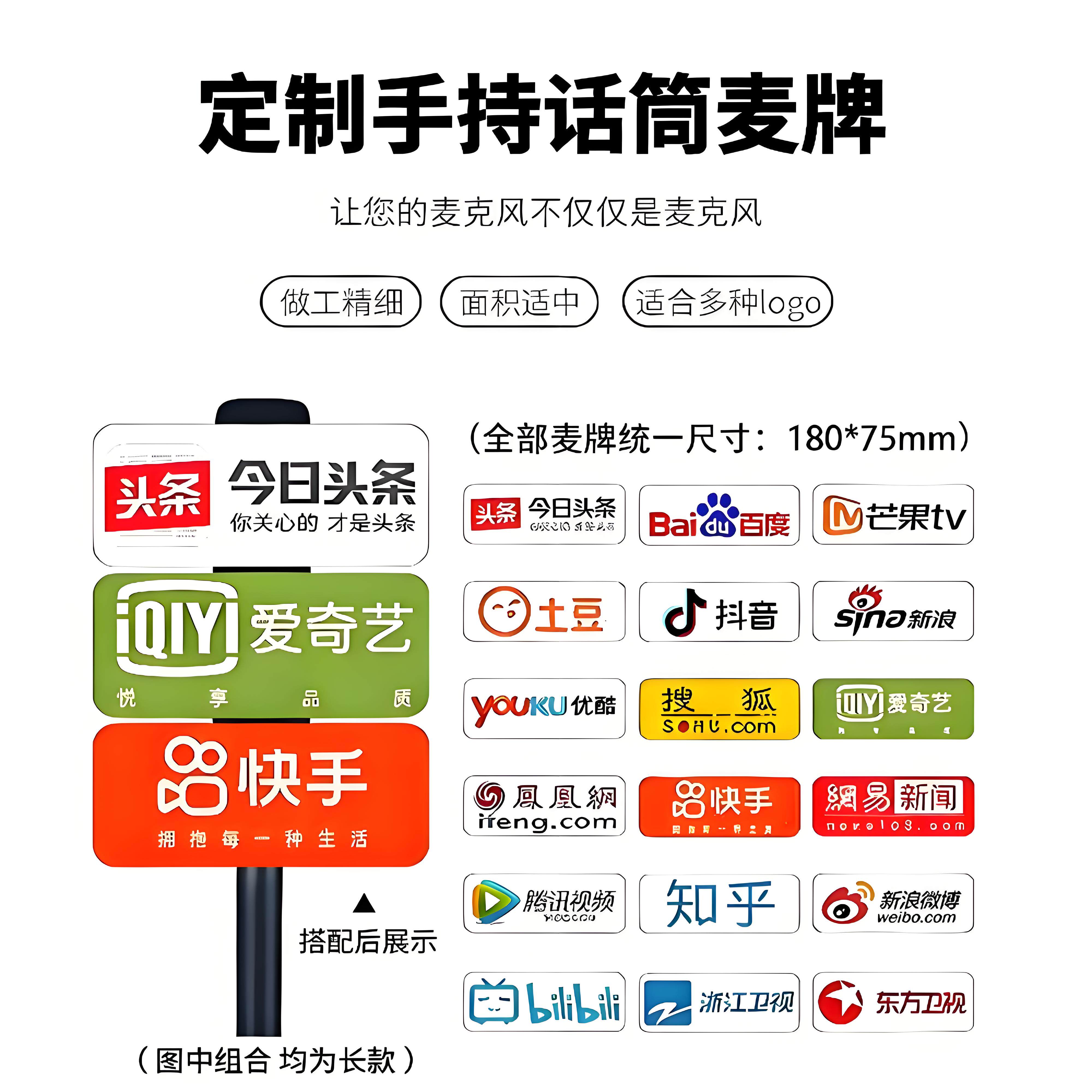 📚 话筒台标定制logo亚克力板卡扣定制麦牌麦标采访新闻婚礼话筒道具